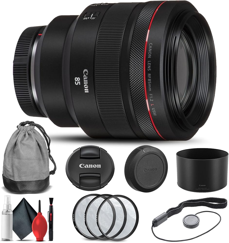 Bundle Items Includes: 1 x Canon RF 85mm f/1.2L USM Lens, 1 x 82mm 3 Piece Filter Kit, 1 x Lens Cap Keeper, 1 x Cleaning Kit