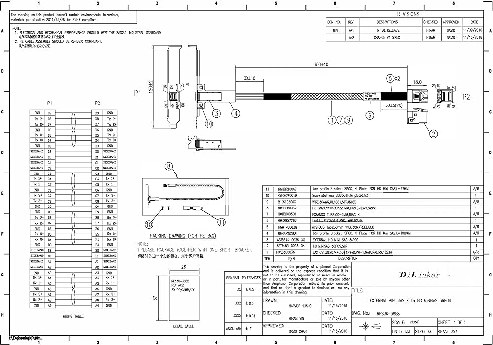 The internal parts of HD MiniSAS of L SFF-8644 are SFF-8643 conforming to SAS 3.0, and also support 12Gb/s SAS data transmission speed.