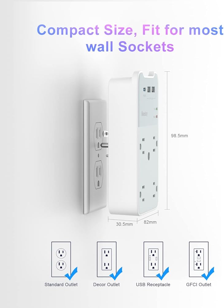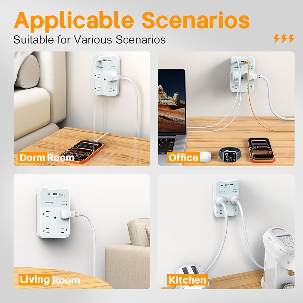 【موسع قابس متعدد الوظائف 9 في 1】هذا الواقي من زيادة التيار لمنفذ التوصيل المتعدد هو وعاء مزدوج موجود على الحائط ويمتد إلى 6 منافذ + 3 منافذ شحن USB.