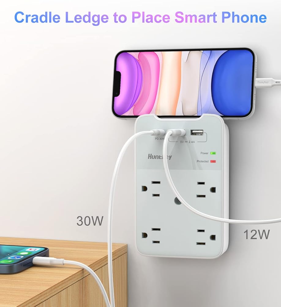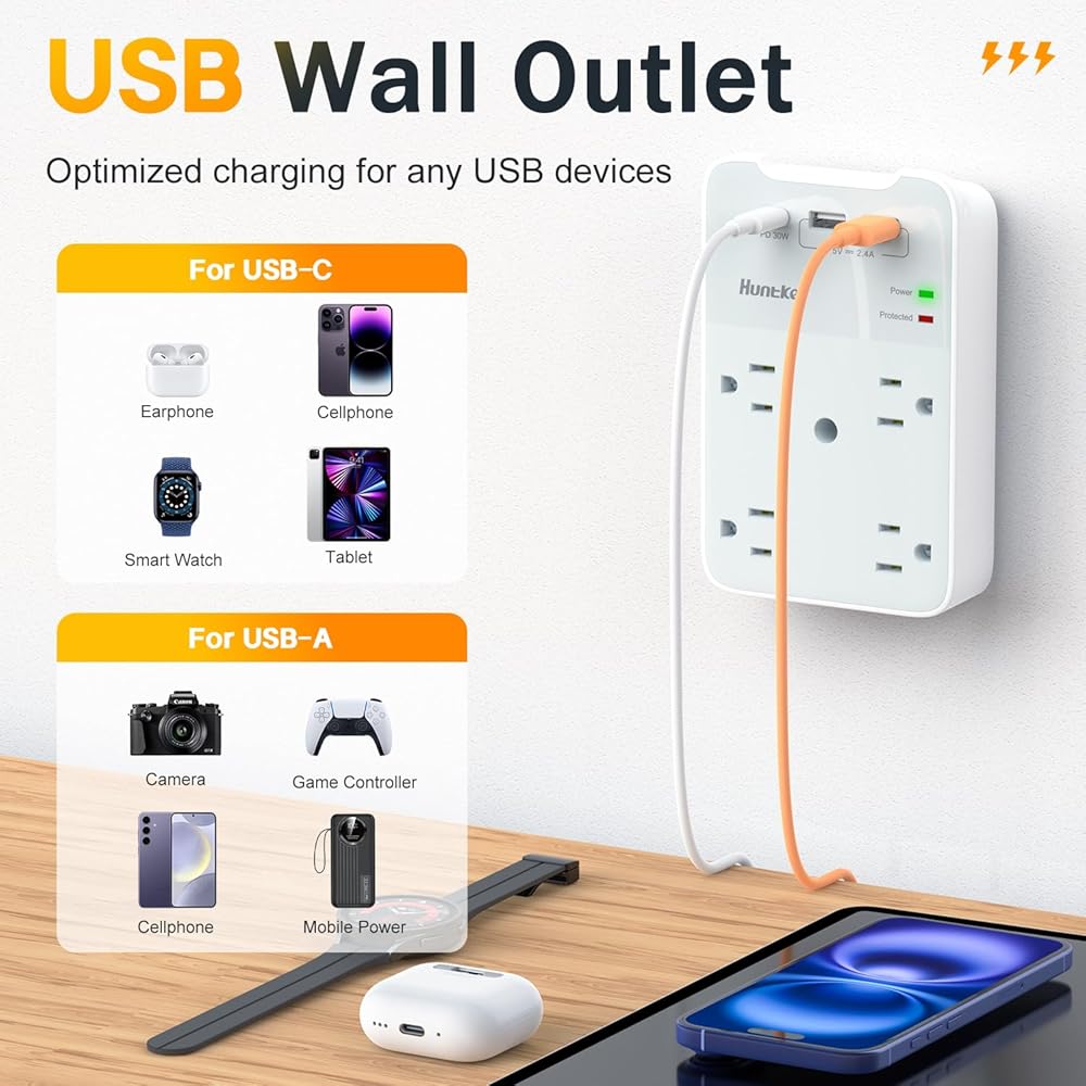 【شحن USB ذكي IC】موسع القابس مع 3 منافذ USB إجمالي 5 فولت/3.4 أمبير، كل منفذ USB A يتميز بإخراج 2.4 أمبير كحد أقصى. مدمج بتقنية ذكية، يكتشف أجهزة الشحن ويوفر سرعة شحن مثالية تلقائيًا، متوافق مع معظم أجهزة USB.