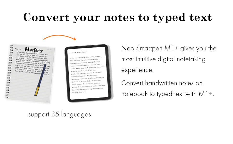 يلتقط كتابتك اليدوية في شكل رقمي - يحتوي Neo Smartpen M1+ على كاميرا صغيرة بالداخل تسجل كتابتك ثم ترسل هذه البيانات إلى جهازك (الهاتف الذكي أو الجهاز اللوحي).