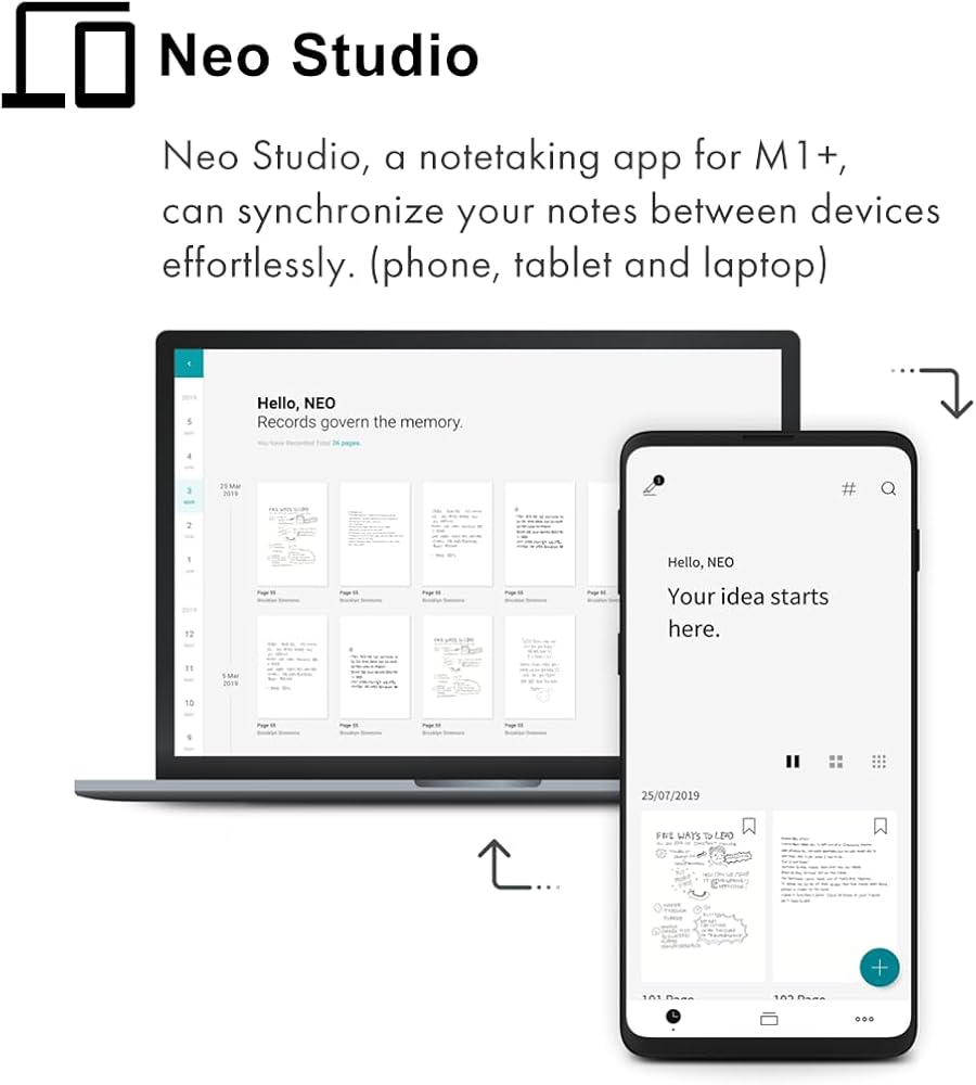 Neo Smartpen M1+ للأندرويد والأيفون والكمبيوتر المحمول | رقمنة الكتابة اليدوية | مزامنة بلوتوث في الوقت الحقيقي، الكتابة اليدوية إلى نسخ النص، التصدير إلى البريد الإلكتروني والمستندات (أسود)