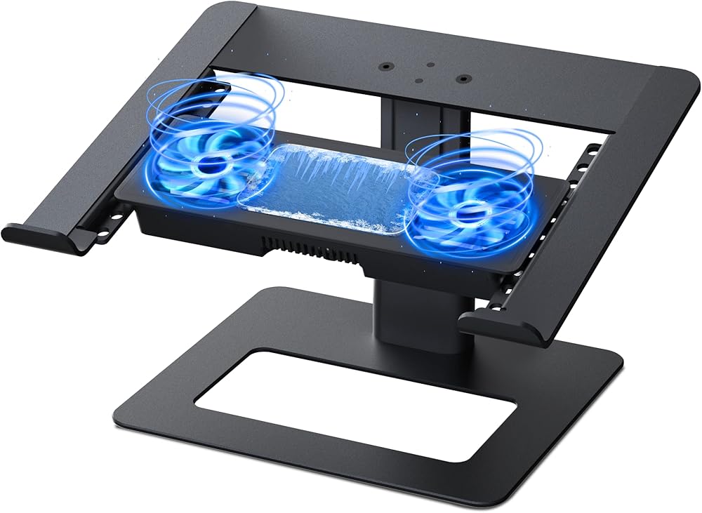 قاعدة تبريد للابتوب من ايرجوبولو مع رقائق تبريد شبه موصلة قابلة للازالة ومروحتين تبريد، حامل تبريد لابتوب قابل للتعديل للمكتب متوافق مع نوت بوك والكمبيوتر من 10 الى 15.6 انش، اسود