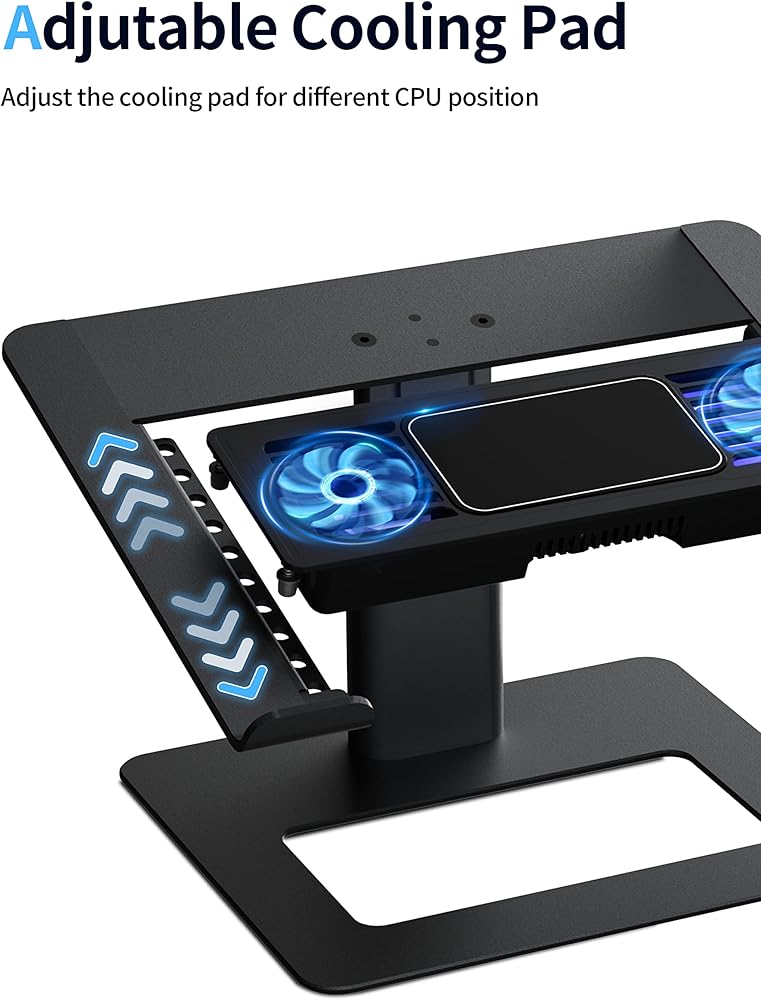تصميم قابل للتعديل ➤ يمكنك ضبط حامل اللاب توب إلى أعلى أو أقل حسب احتياجاتك، وضبط وسادة التبريد لوضع وحدة المعالجة المركزية المختلفة.