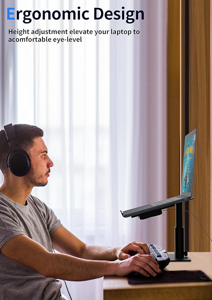 تصميم مريح ➤ يرفع حامل اللاب توب شاشة الكمبيوتر والنوت بوك الخاص بك إلى مستوى رؤية عينيك، مما يمنعك من الانحناء على الشاشة، مما يقلل من آلام الرقبة والكتف.