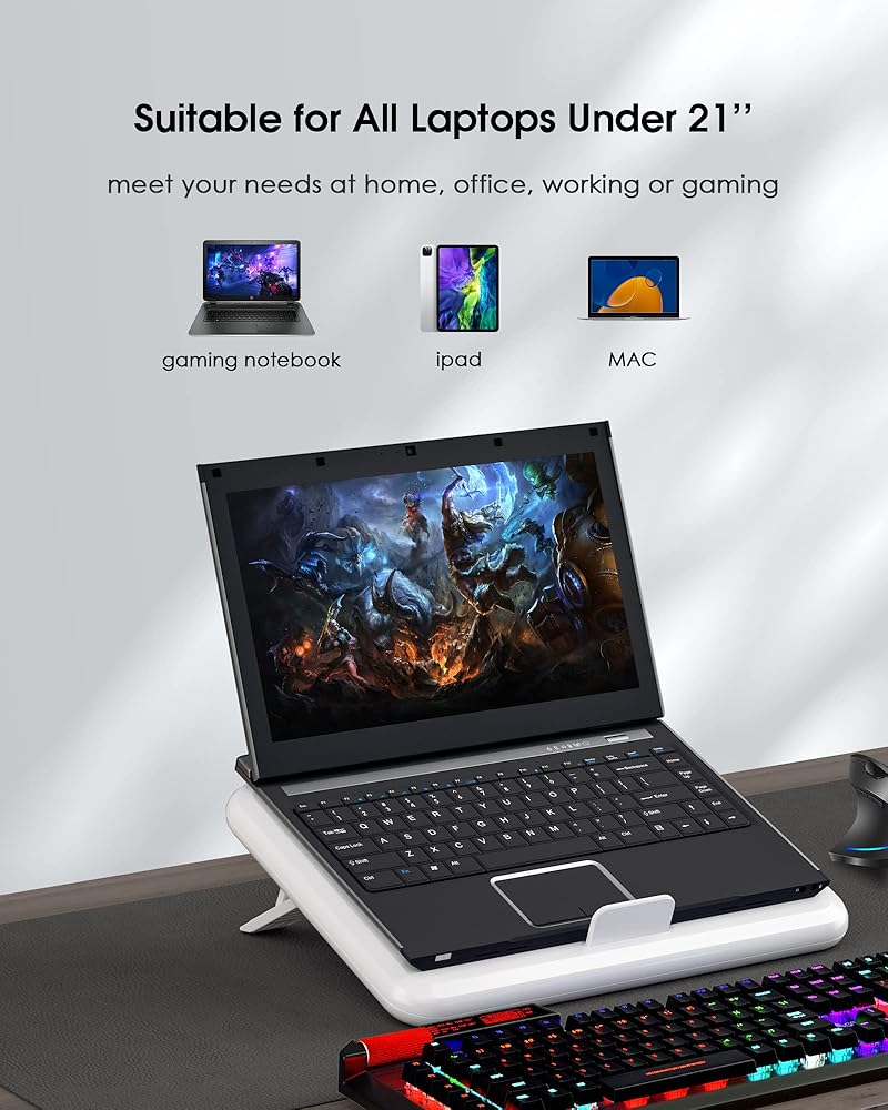 Wide Compatibility - Suitable for laptops under 21'', such as Dell, MacBook Pro, Alienware, ThinkPad, Lenovo, HP, Asus and more. Meet your needs at home, office, working or gaming, this laptop cooling pad keeps your laptop at a healthy functional temperature.