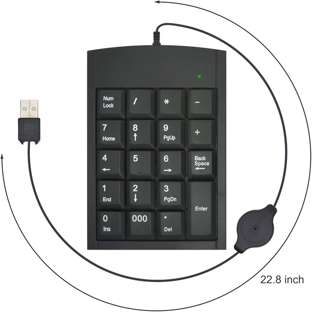 MythGeek لوحة مفاتيح رقمية مكونة من 18 مفتاحًا، لوحة مفاتيح أرقام المحاسبة المالية بسلك USB قابل للسحب مع 18 مفتاحًا لأجهزة الكمبيوتر المحمول Mac Windows XP والكمبيوتر المكتبي
