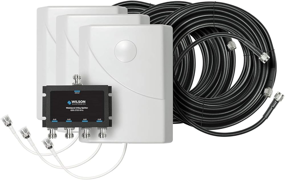 هوائي داخلي لتعزيز الإشارة: تم تصميم مجموعة توسيع الهوائي الثلاثي لتركيبات المباني الثابتة داخل المنزل أو المكتب أو المساحة التجارية وتساعد على تسهيل توزيع الإشارة الخلوية إلى مناطق متعددة. يوفر هوائي اللوحة المثبتة على الحائط أفضل قوة إشارة في فئتها عند استخدامه مع معزز الإشارة.