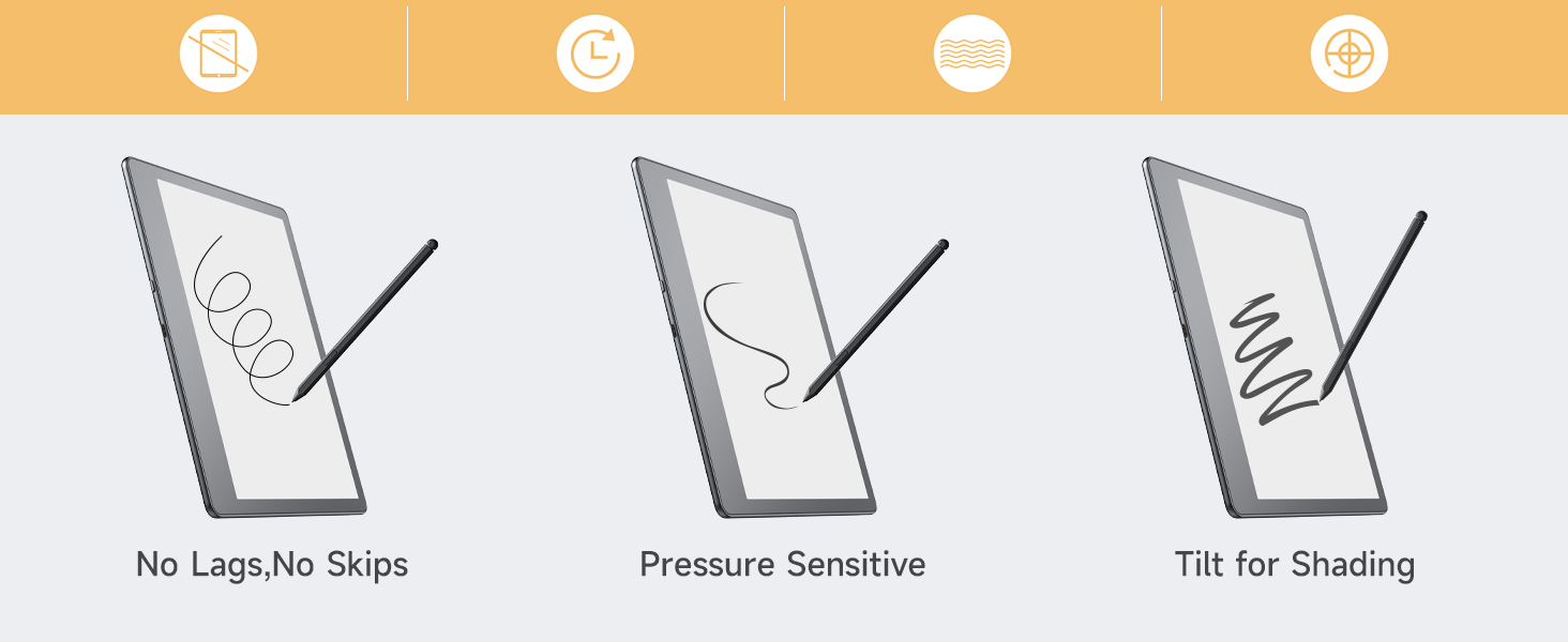 [تصميم حامل القلم]: أكثر ملاءمة للاستخدام، وآمن لتخزين القلم الخاص بك عند الحمل. نحيف وخفيف الوزن، لن يزيد من حجم الجهاز اللوحي الخاص بك.