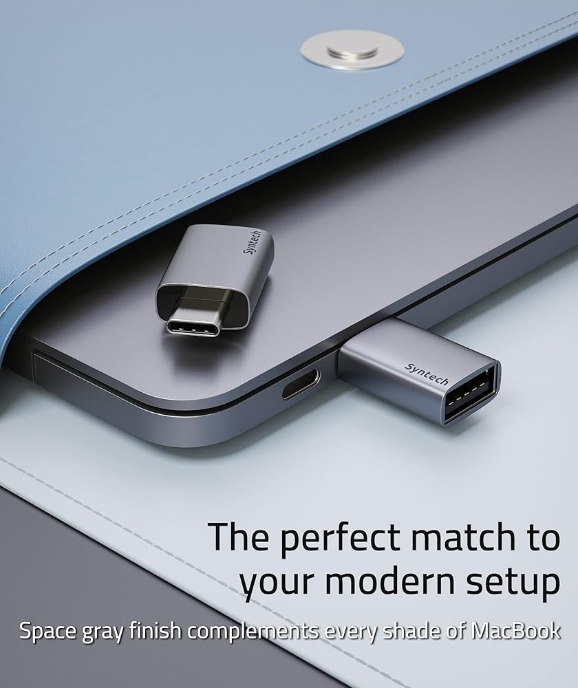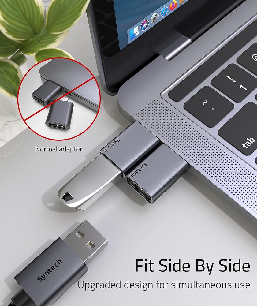 【 Fit Side By Side 】 The USB-C to USB adapter is upgraded to be slimmer enough to fit two side by side into your MacBook Pro. Double your productivity with simultaneous two USB C ports access.