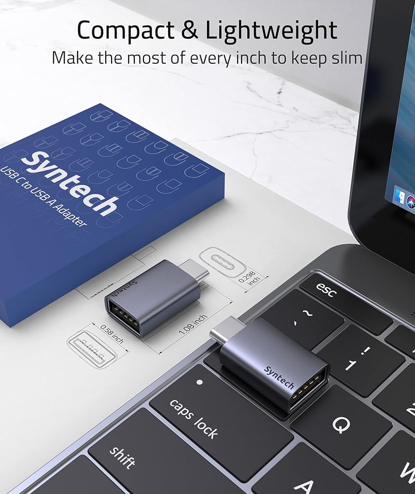 Syntech USB C to USB Adapter 2 Pack Fit Side by Side Type C Male to USB 3.0 Female Adapter Compatible with MacBook Pro/Air 2021,iMac 2021,iPad Mini 6,and More Thunderbolt 3/Type C Devices Space Gray