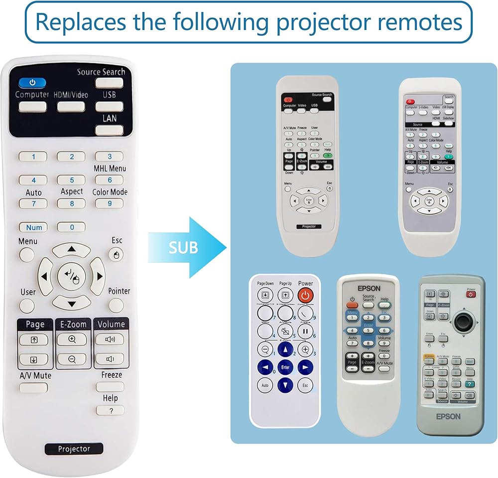 【No configuration required】replacement Epson projector remote works out of the box without any setup, long transmission distance transmits signals over long distances (>10m) and stable performance.