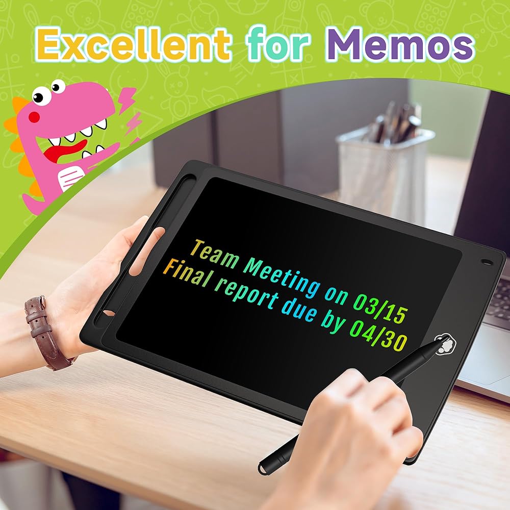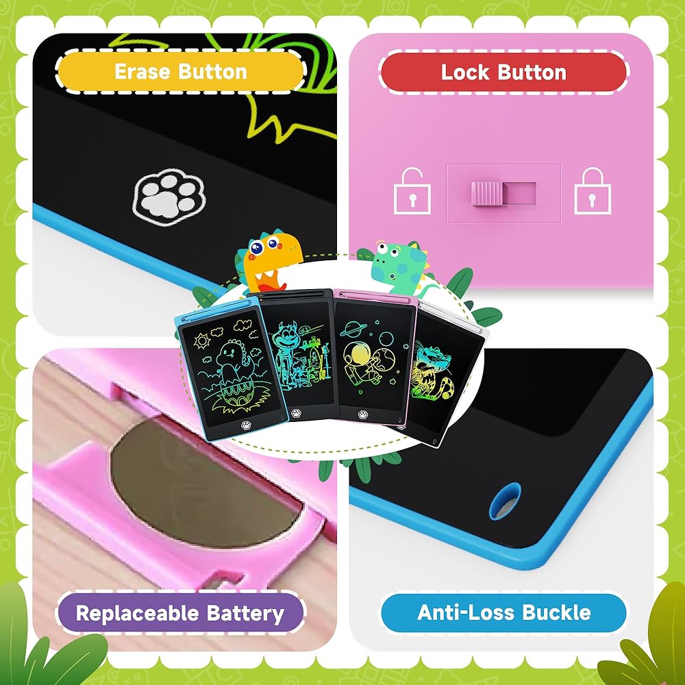 【تصميم مطور لحماية العين】يعتمد تابلت الكتابة الرقمي LCD للأطفال على أحدث تقنيات LCD الحساسة للضغط، مما يوفر ألوان قوس قزح مفعمة بالحيوية بدون وهج أو ضوء أزرق. تابلت الكتابة LCD يمكنك الكتابة بسهولة باستخدام القلم البلاستيكي المتضمن مع شاشة قفل بمفتاح واحد ومفتاح واحد واضح.