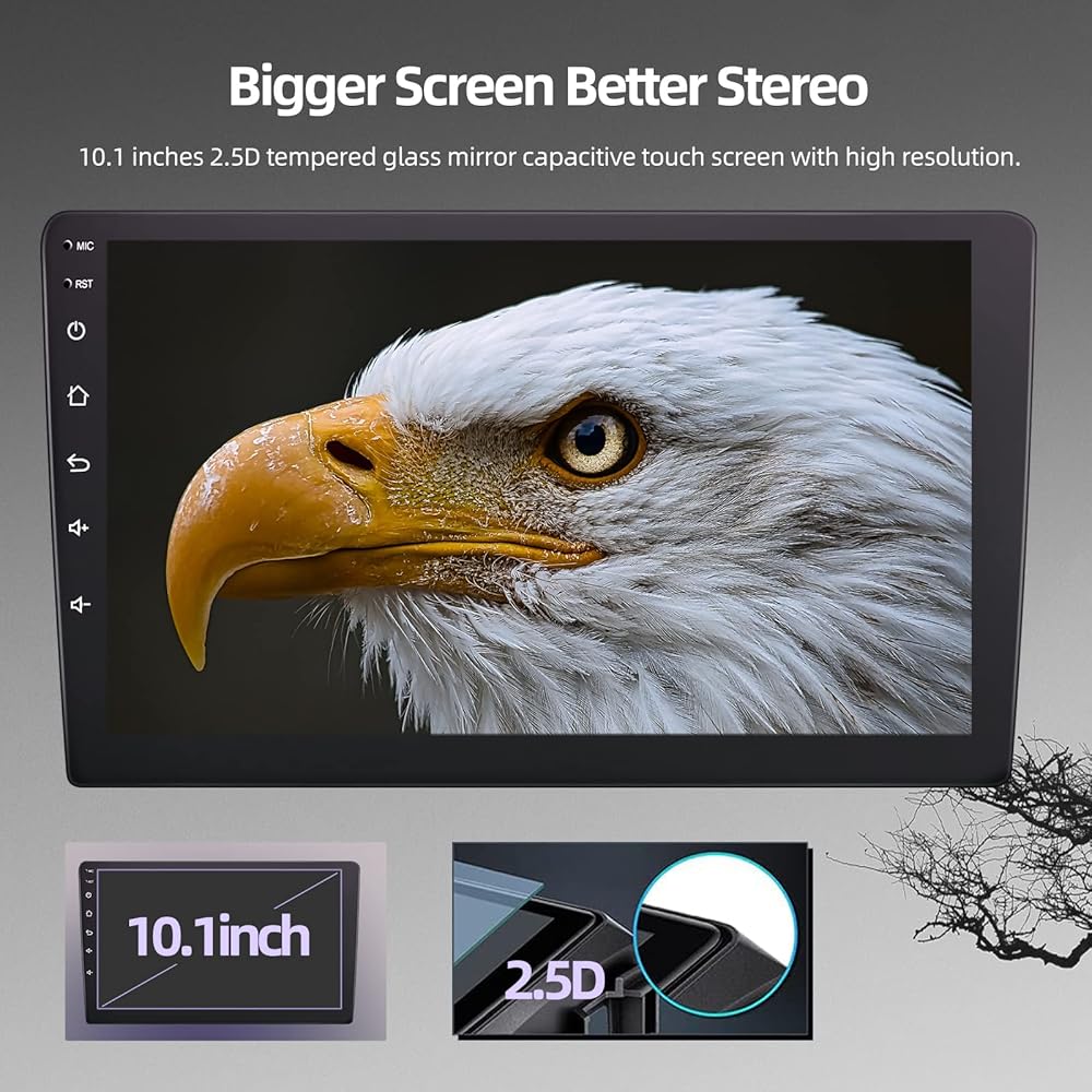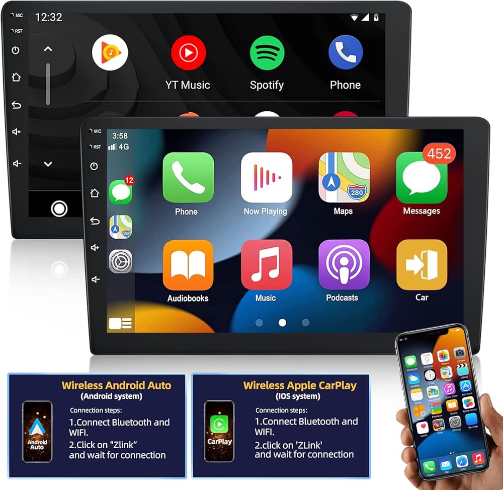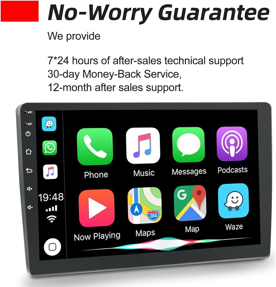 ستيريو سيارة أندرويد 10.1 بوصة مزدوج Din مع Apple Carplay وAndroid Auto، وراديو بشاشة لمس، وواي فاي، ونظام تحديد المواقع العالمي، وصوت هاي فاي + كاميرا احتياطية AHD وميكروفون