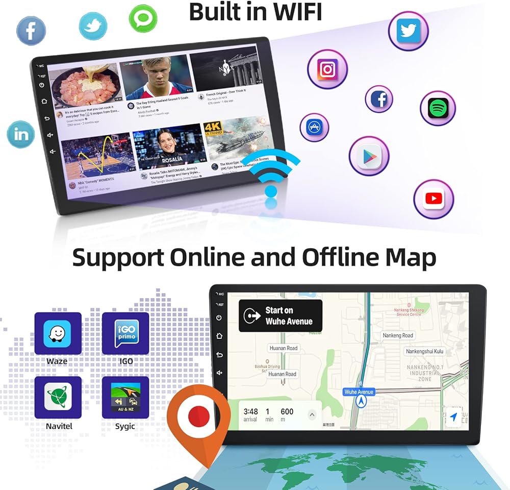 【صوت هاي فاي وكاميرا احتياطية AHD】تتميز وحدة رأس Android بصوت هاي فاي (دقة عالية (غالبًا ما يتم تقصيرها إلى هاي فاي أو هاي فاي) هي إعادة إنتاج الصوت عالي الجودة)، استمتع بالصوت في السيارة، كما تدعم أيضًا مضخم صوت. مجهزة بكاميرا عكسية فائقة الوضوح مقاومة للماء AHD للرؤية الليلية، ستعرض الصورة العكسية تلقائيًا بمجرد أن تكون السيارة في ترس عكسي.