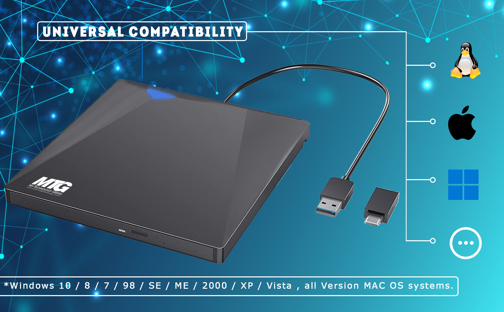 🌍【توافق عالمي】: يتوافق محرك الأقراص المضغوطة الخارجية MTG DVD RW مع أنظمة التشغيل Windows 10 / 8 / 7 / 98 / SE / ME / 2000 / XP / Vista، وجميع أنظمة تشغيل MAC OS. يدعم الكمبيوتر المحمول، والكمبيوتر المحمول، وChromebook، والكمبيوتر الشخصي، والكمبيوتر المكتبي. بالنسبة لأجهزة الكمبيوتر المكتبية، يرجى توصيل الجهاز بمنفذ USB الموجود في الجزء الخلفي من اللوحة الأم للاستخدام العادي.
