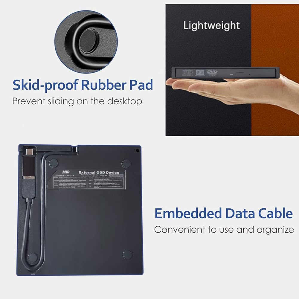 💿[فائقة النحافة وقابلة للحمل]: محرك أقراص DVD رفيع للغاية وصغير الحجم (كابل قابل للفصل)، خفيف الوزن؛ سهل الحمل والتخزين سواء في المنزل أو السفر.. يمكنك مشاهدة مقاطع فيديو DVD أو الاستماع إلى الموسيقى أو تثبيت البرامج أو إنشاء أقراص احتياطية وما إلى ذلك.