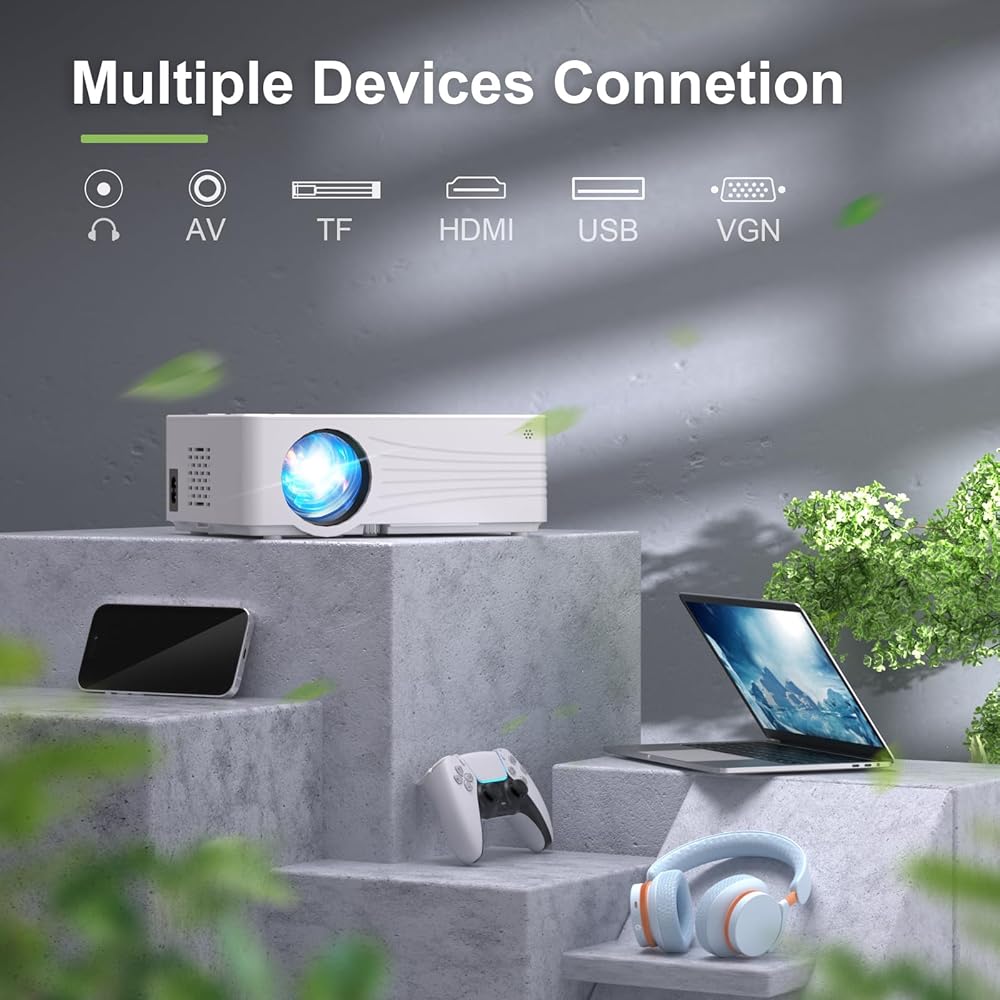 جهاز عرض أصلي 1080 بكسل مع 5G WiFi وBluetooth 5.2، جهاز عرض EAZVUE Mini 400 ANSI Lumen، جهاز عرض محمول متوافق مع عصا التلفاز/الهاتف/الكمبيوتر الشخصي/DVD/HDMI/AV/USB/SD، جهاز عرض أفلام خارجي