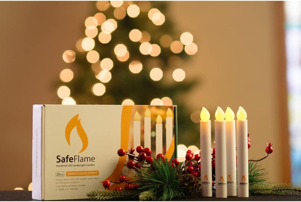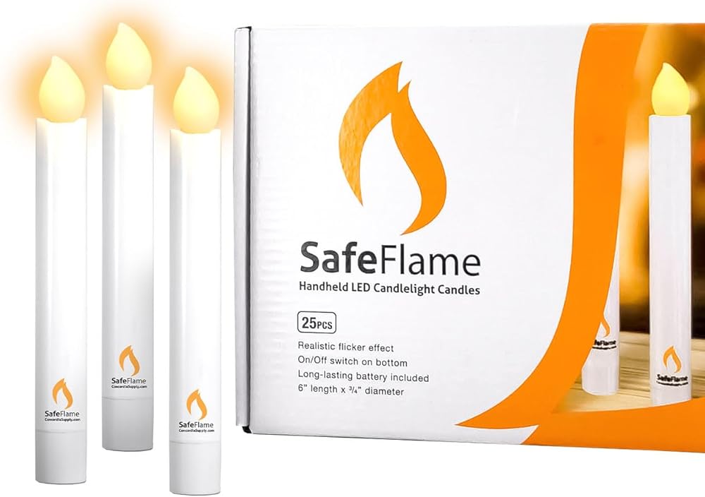 شموع SafeFlame LED - 6 بوصات (25 حزمة) شموع تعمل بالبطارية المحمولة مع تأثير وامض - مثالية لخدمات الكنيسة، والوقفات الاحتجاجية على ضوء الشموع، والمناسبات الخاصة - (العنبر)