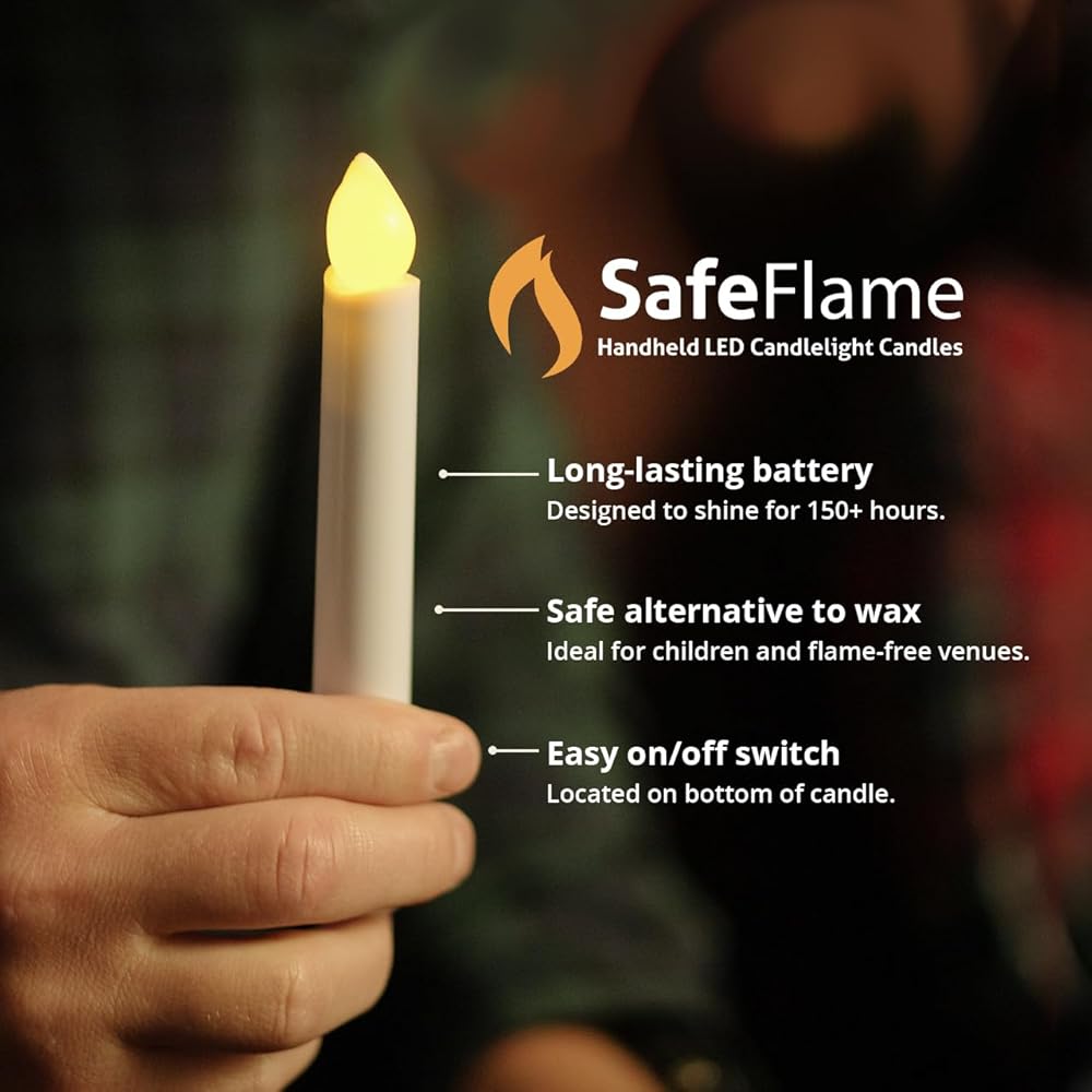 شمعة بطارية عديمة اللهب محمولة باليد. بديل آمن لشموع الشمع. "مفتاح تشغيل/إيقاف" سهل ومريح في الأسفل