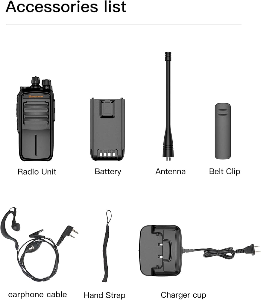 ✨اتصال قوي: مع خرج طاقة عالي 9 وات، يضمن راديو موهانتون UHG-01 ثنائي الاتجاه اتصالاً واضحًا وموثوقًا، حتى عبر المسافات الطويلة.