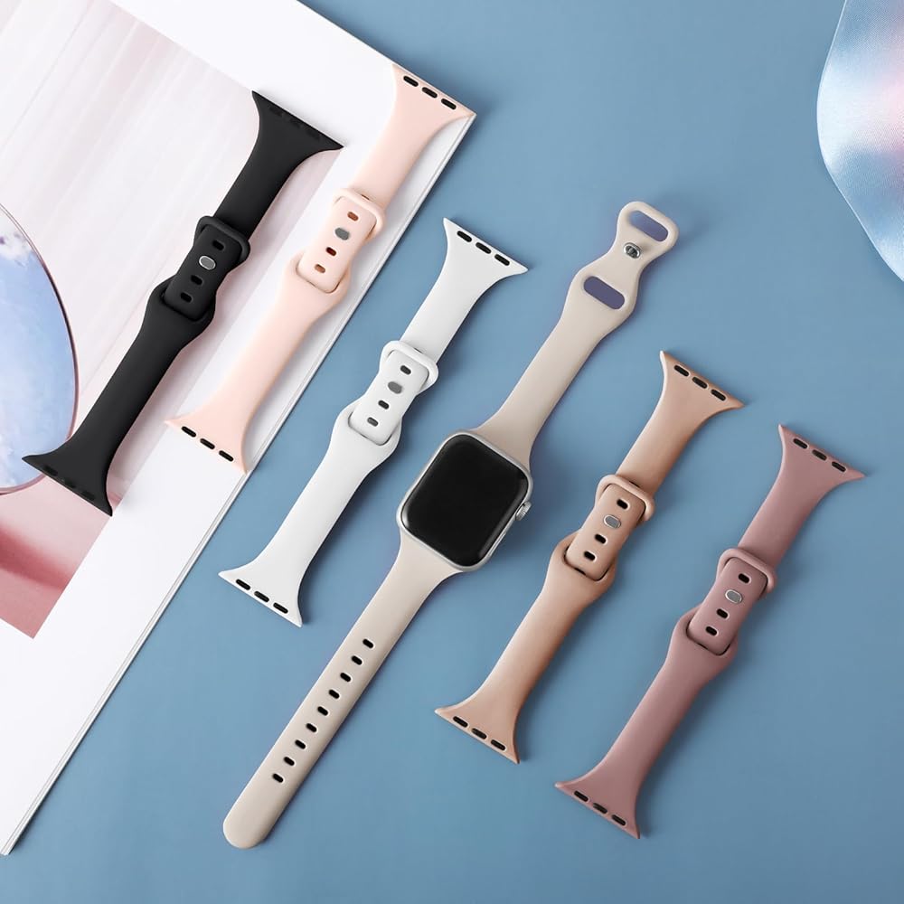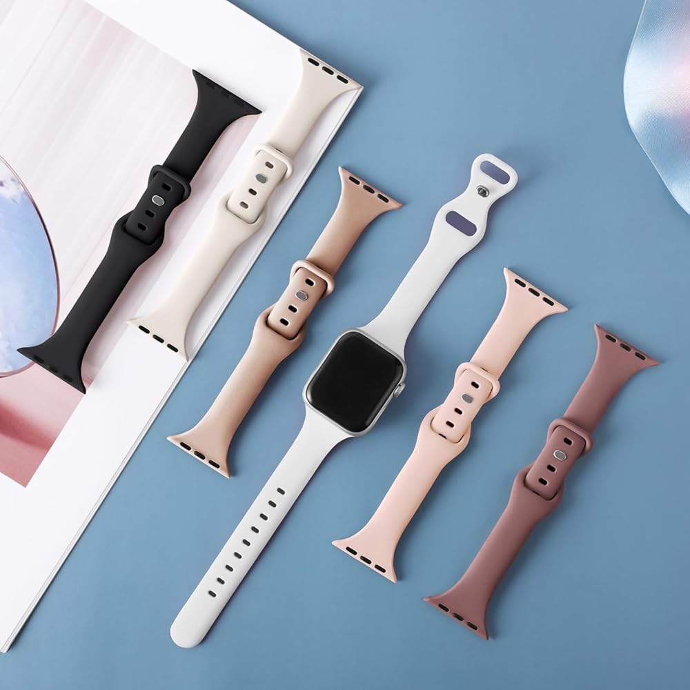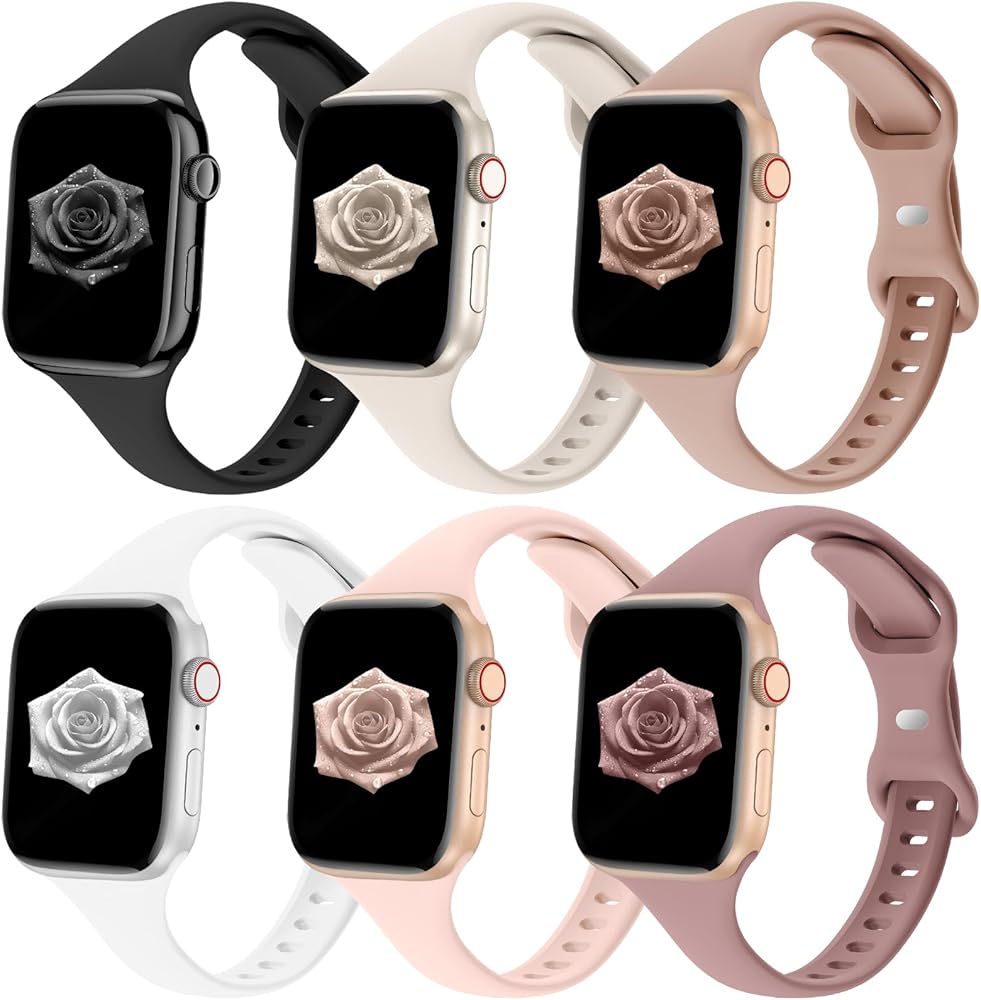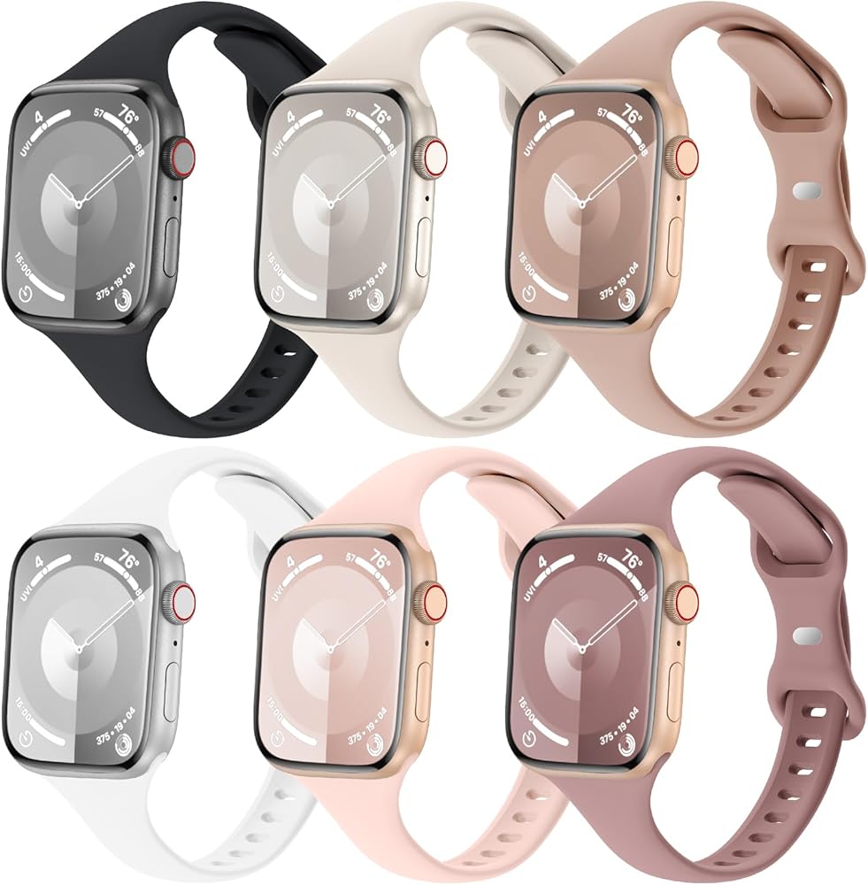 مجموعة من 6 أساور رفيعة رفيعة من Eilesuny متوافقة مع ساعة Apple 38 مم 40 مم 41 مم 42 مم 44 مم 45 مم 49 مم، حزام رياضي من السيليكون الناعم البديل لسلسلة iWatch 9/8/7/6/5/4/3/2/1 Ultra/2 SE للنساء والرجال