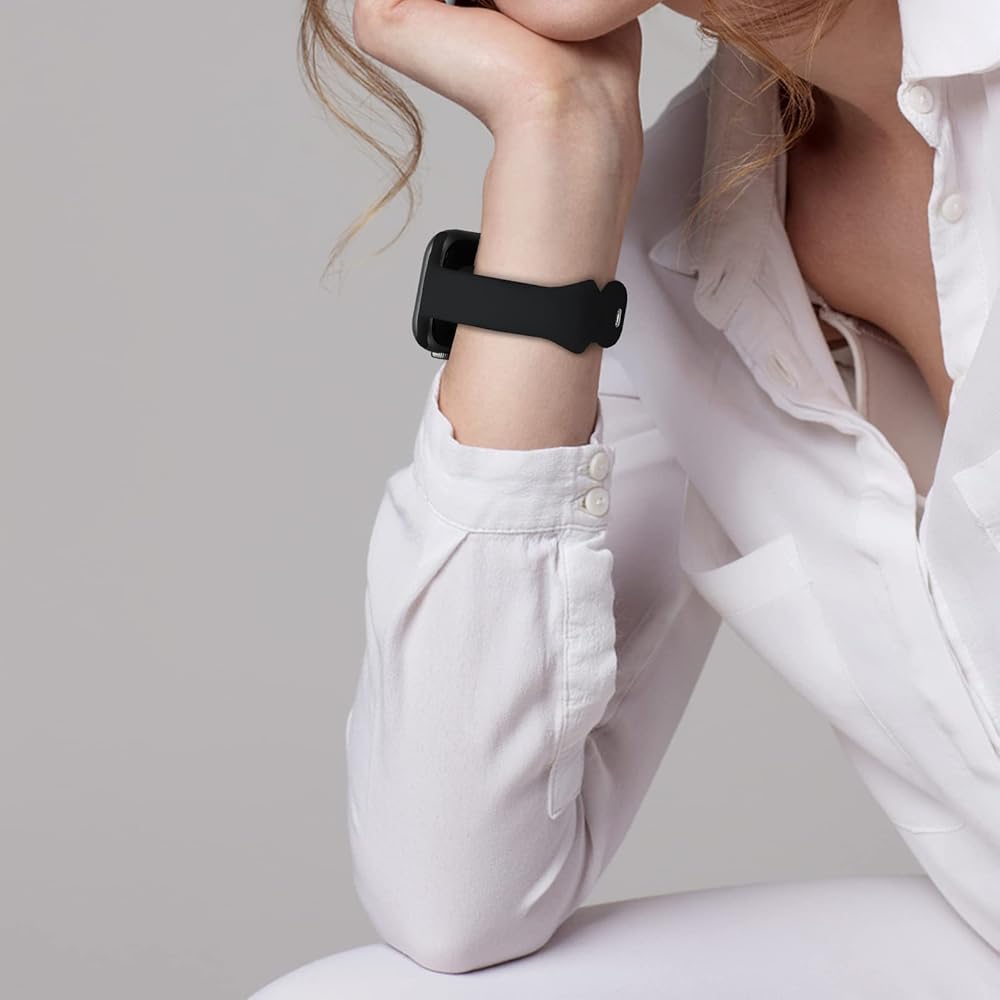 تصميم شائع: تصميم رفيع وضيق فريد يجعل السوار أرق وأصغر وأكثر مرونة ونعومة، ويجعل المعصم يبدو أنحف ويتحرك بحرية أكبر، ويناسب تمامًا ملابس النساء والفتيات. فتحات مسامية أسهل في ضبط الطول، وهي اختيار جيد للارتداء اليومي وممارسة الرياضة.