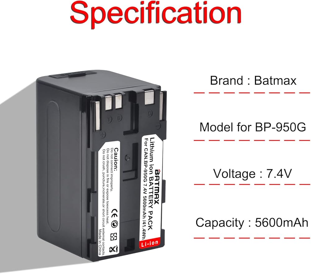 بطارية بديلة لكانون: BP-911 BP-911K BP-914 BP-915 BP-924 BP-927 BP-930 BP-930E BP-930R BP-941 BP-945 BP-950 BP-950G BP-970 BP-970G BP-975 وكانون C2 DM-MV1 DM-MV10 DM-MV20 E1 E2 E30 E65AS EOS C100 EOS C100 Mark II EOS C300 EOS C300 PL EOS C500 EOS C500 PL ES50 ES55 ES60 ES65 ES75 ES300V ES410V ES420V ES5 20A ES4000 ES5000 ES6000 ES6500V ES7000ES ES7000V ES8000V ES8100V ES8200V ES8400V ES8600;