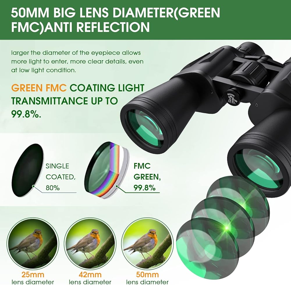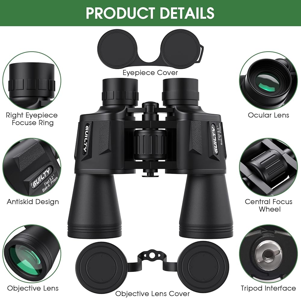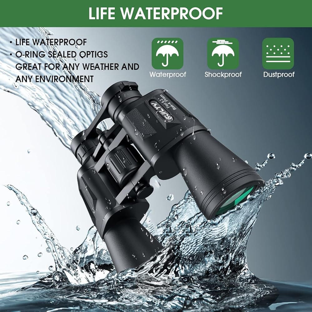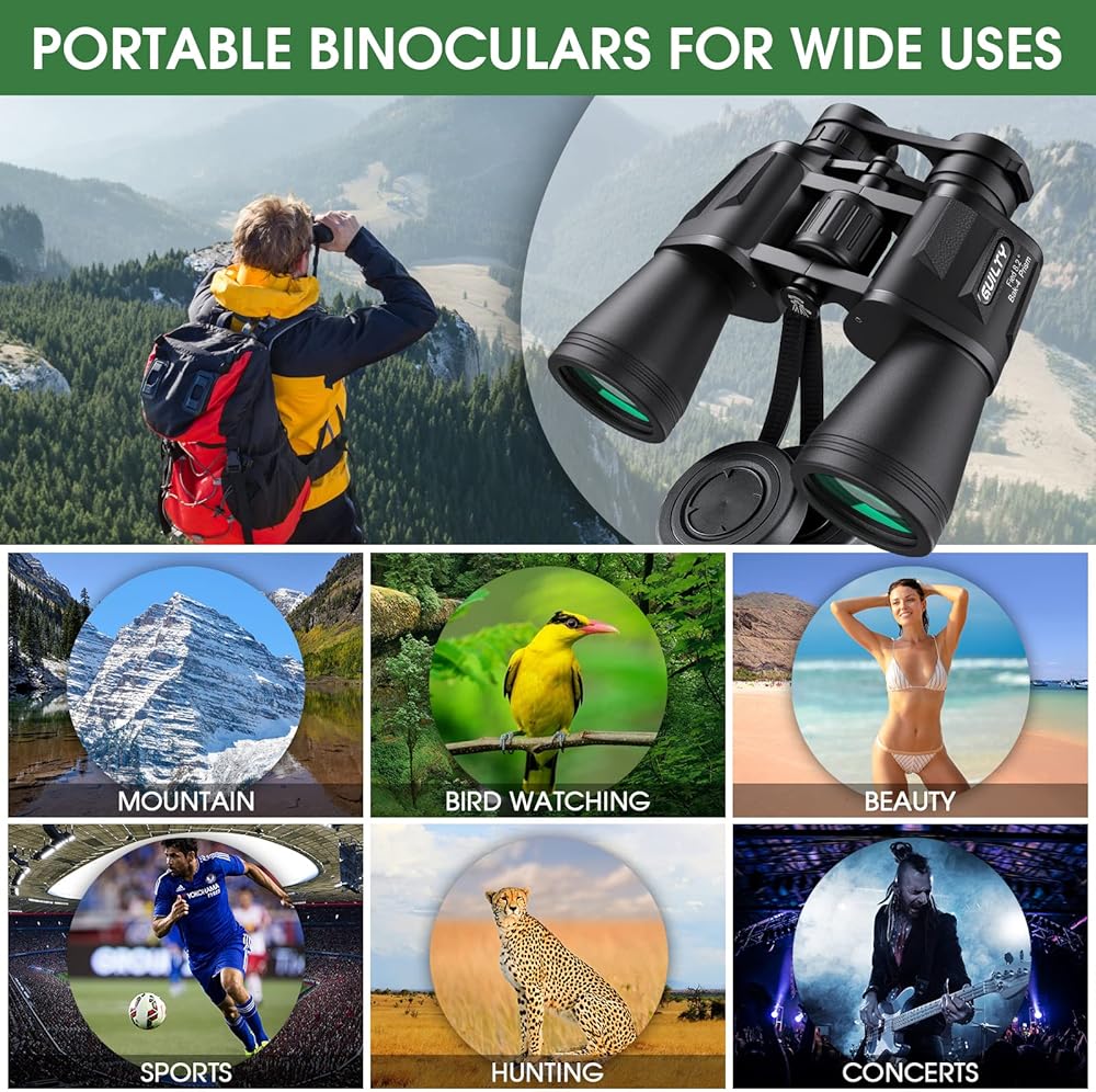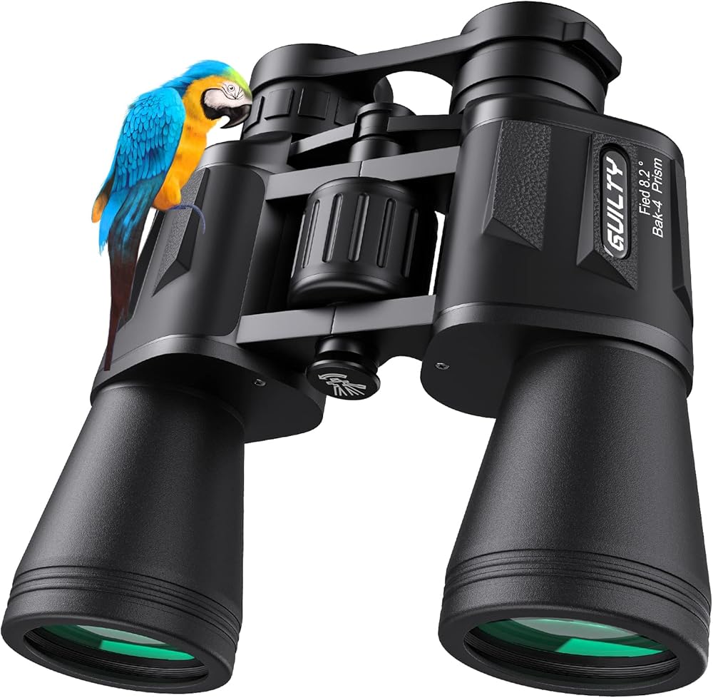 gvilty 20x50 مناظير عالية الطاقة للبالغين، مناظير مدمجة مقاومة للماء ممتازة مع رؤية منخفضة الإضاءة لمشاهدة الطيور والصيد والسفر وألعاب كرة القدم ومشاهدة النجوم مع حقيبة حمل