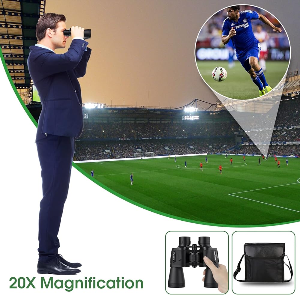 مناظير عالية القوة 20 × 50 للبالغين، مناظير احترافية مدمجة مقاومة للماء مع رؤية منخفضة الإضاءة لمشاهدة الطيور والصيد والسفر وألعاب كرة القدم ومشاهدة النجوم مع حقيبة حمل وحزام
