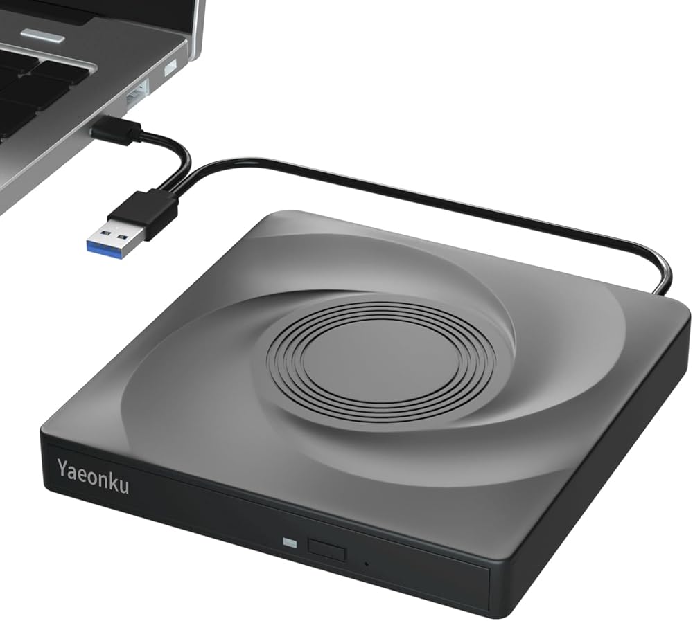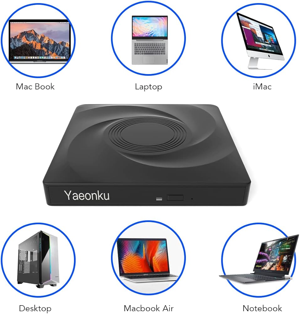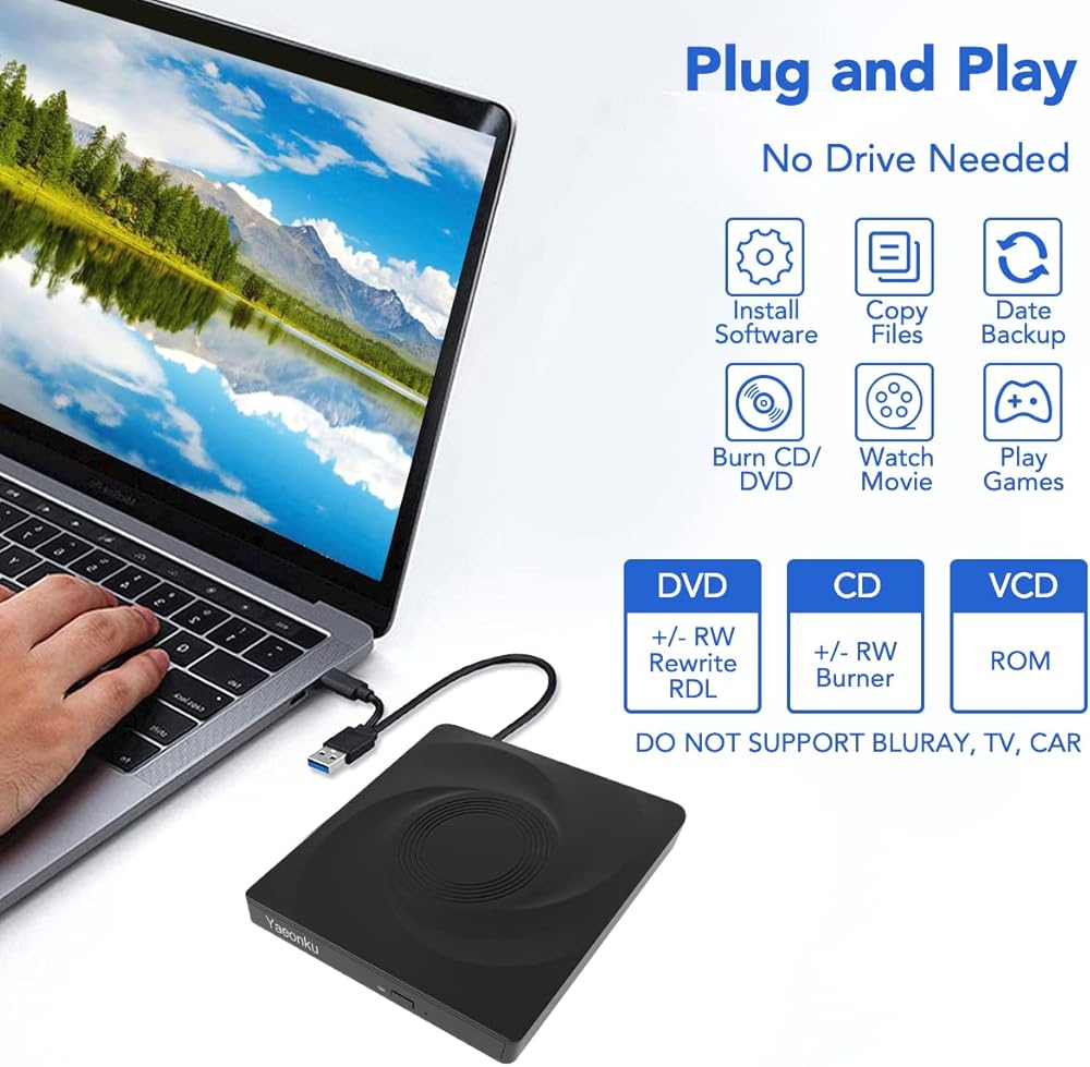 محرك أقراص DVD خارجي Yaeonku، USB 3.0 نوع C ناسخ أقراص مضغوطة محمول CD DVD +/-RW محرك أقراص ضوئي رفيع CD DVD ROM إعادة كتابة مشغل CD/DVD قارئ كاتب لأجهزة الكمبيوتر المحمول وسطح المكتب MacBook PC Windows Linux Mac OS (أسود)