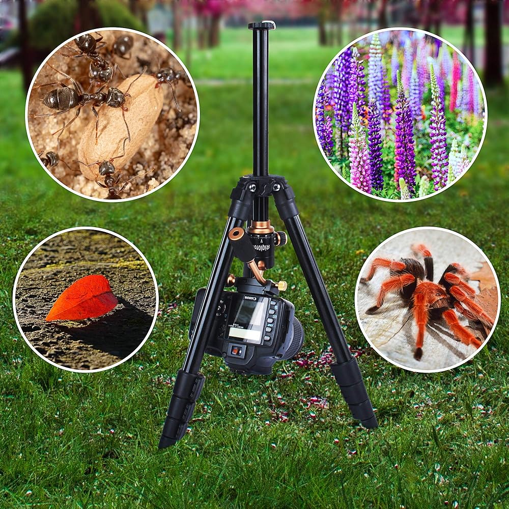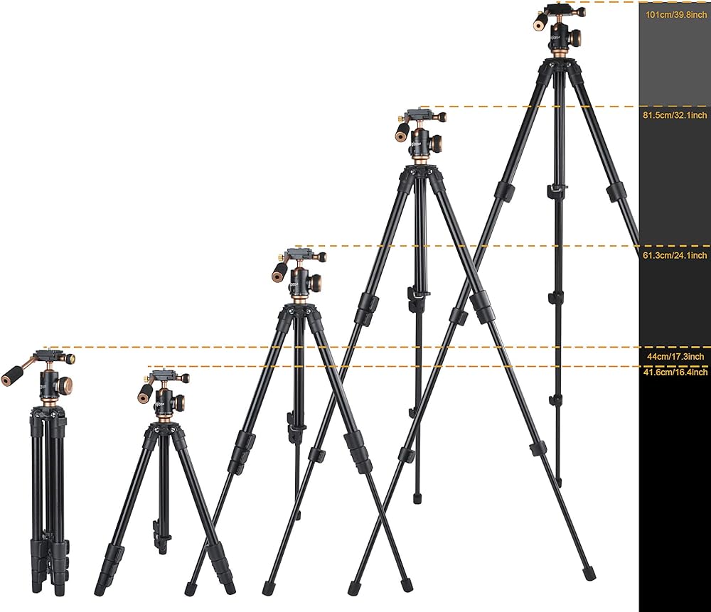 محمول ومرن: يزن الحامل الثلاثي المنافس حوالي 2 رطل فقط، وهو صغير جدًا وخفيف الوزن للتصوير الفوتوغرافي في الهواء الطلق أو السفر، أو فقط ضعه على طاولتك لمدونات فيديو يوتيوب. يشتمل هذا الحامل ثلاثي القوائم على حقيبة حمل للتخزين.