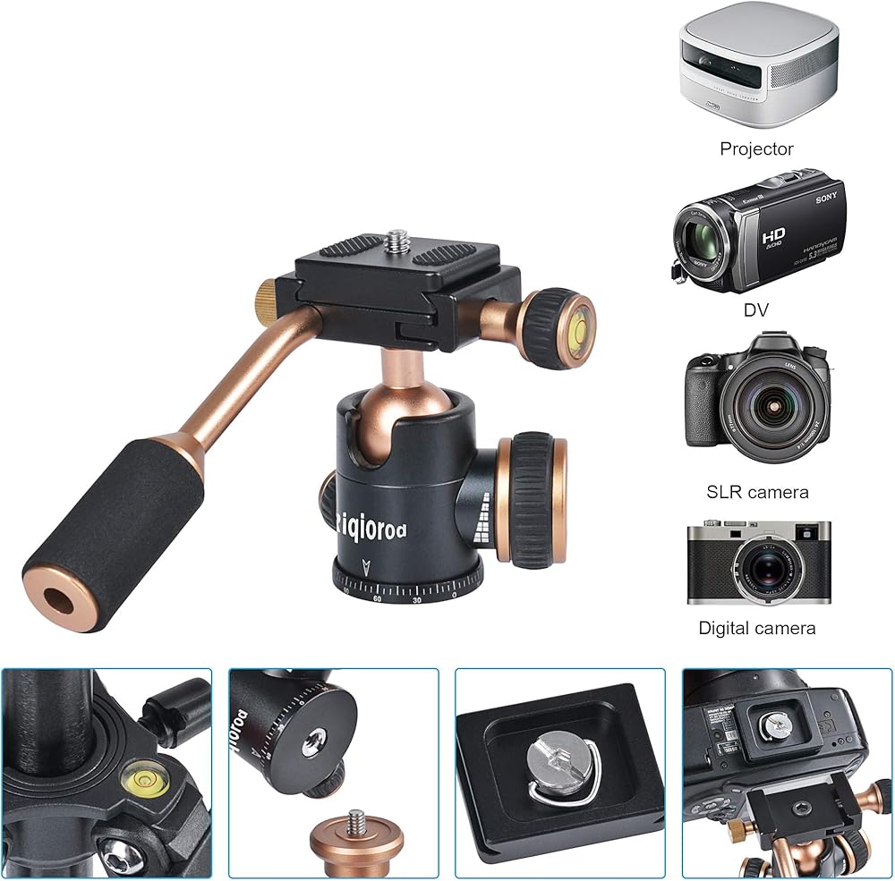 الاستخدام على نطاق واسع: رأس حامل ثلاثي مع برغي قياسي 1/4، يسمح لك بتركيب الكاميرا أو حامل الهاتف...
