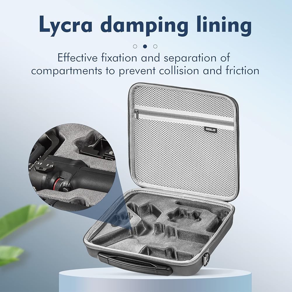 تم تصميم هذه الحافظة المقاومة للكسر خصيصًا لتناسب جيمبال دي جيه اي ار اس 3 ميني وتتميز بمادة نايلون مقاومة للرذاذ ومقاومة للاهتراء تتحمل الرذاذ القادم من أي اتجاه.
