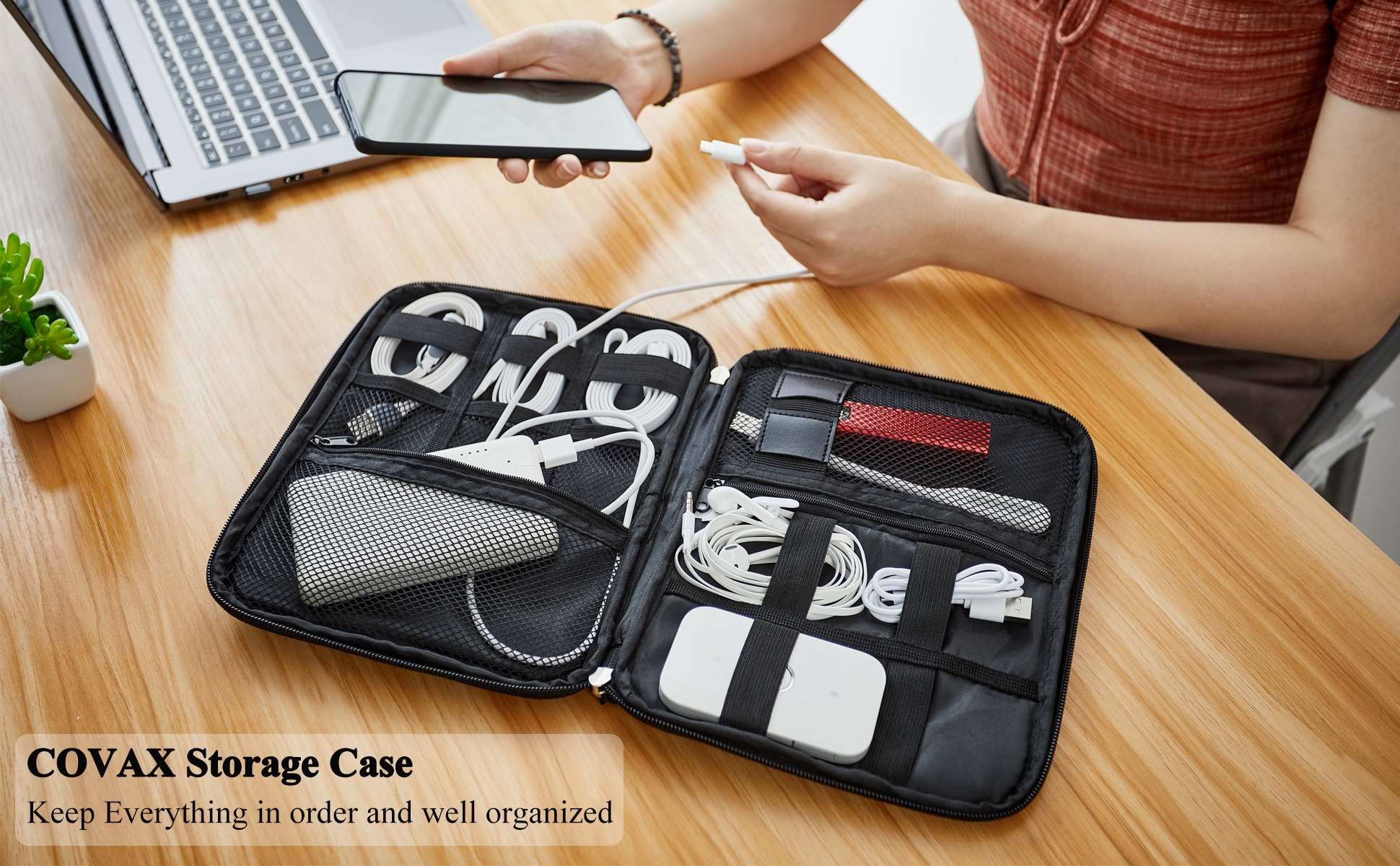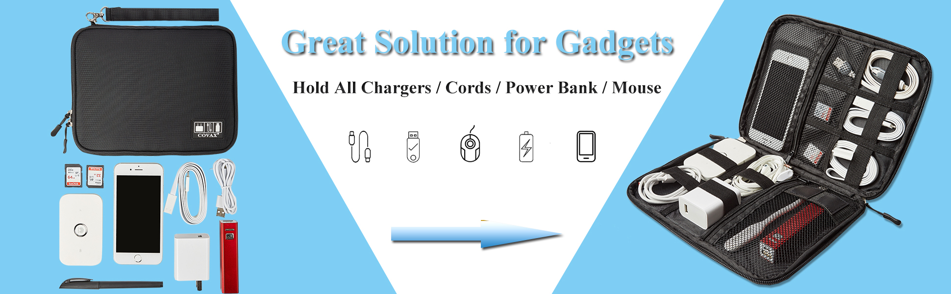 منظمة - حافظ على جميع الأدوات في مكان واحد، حافظ على أجهزتك الهامة في متناول اليد، دون مطاردة الأسلاك في حقيبة الظهر الخاصة بك بعد الآن.