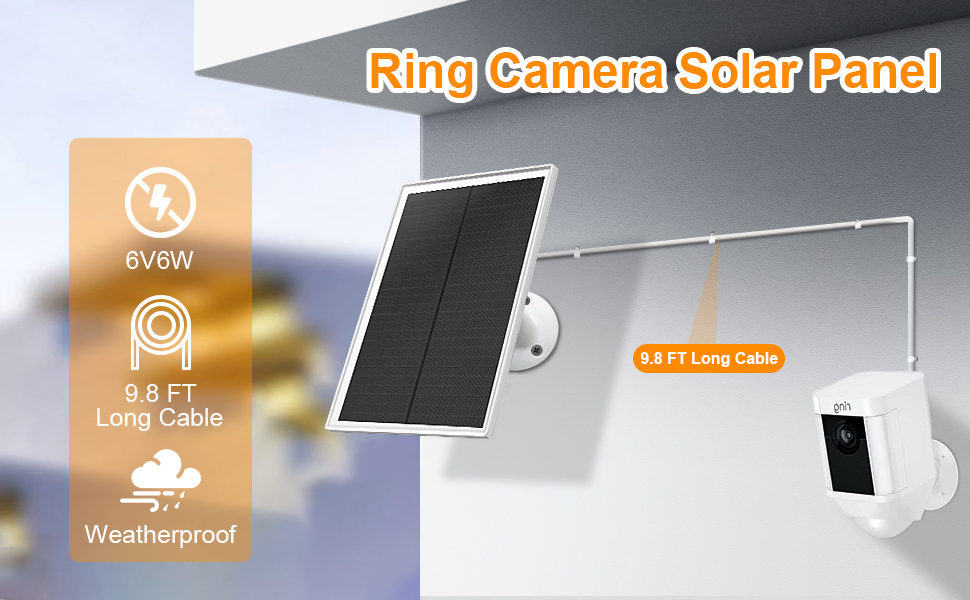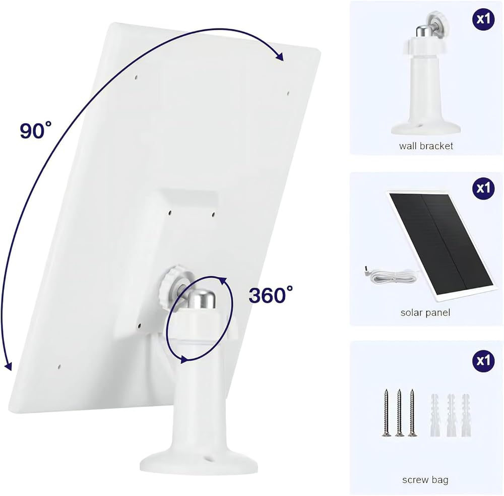 Packages Include 1x Ring Solar Panel, 1 X 3m(9.8ft) DC Cable, 1 X 360-Degree Mounting Bracket, a pack Circle cable clips with steel nail, Camera Not Included..Customer Service If you have any questions about our solar panels, we offer free returns and exchanges, as well as 24-hour online manual customer service. Please feel free to contact us at any time