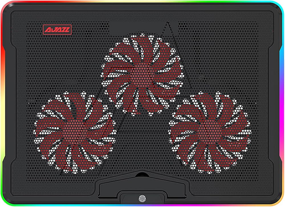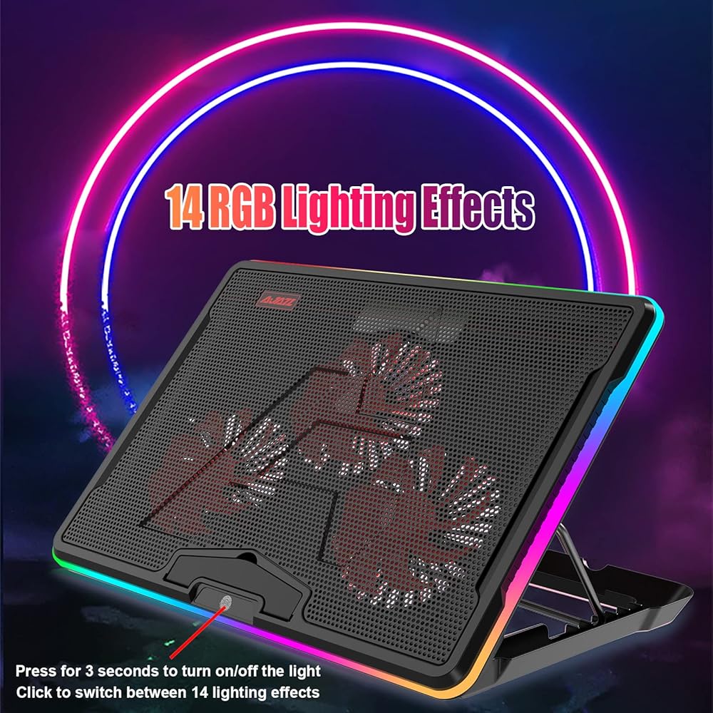 وسادة تبريد للكمبيوتر المحمول ANC160، شريط LED محيطي كامل، 15 نوعًا من تأثيرات الإضاءة، 3 مراوح هادئة قابلة للتعديل، 7 زوايا تعديل، تدعم ما يصل إلى 19 بوصة