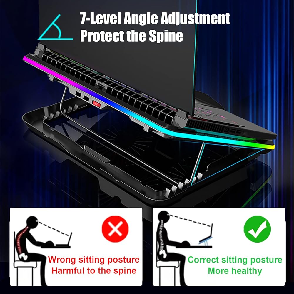 【تأثير ممتاز لتبديد الحرارة】شبكة معدنية عالية الجودة توفر وضعًا ثابتًا ومقاومًا للاهتراء لأجهزة الكمبيوتر المحمولة. يتم استخدام 3 مراوح كبيرة بقطر 11 سم لقمع درجة حرارة الكمبيوتر المحمول بقوة، وتقليل التأتأة والتباطؤ، وجعل الألعاب والعمل أكثر سلاسة!