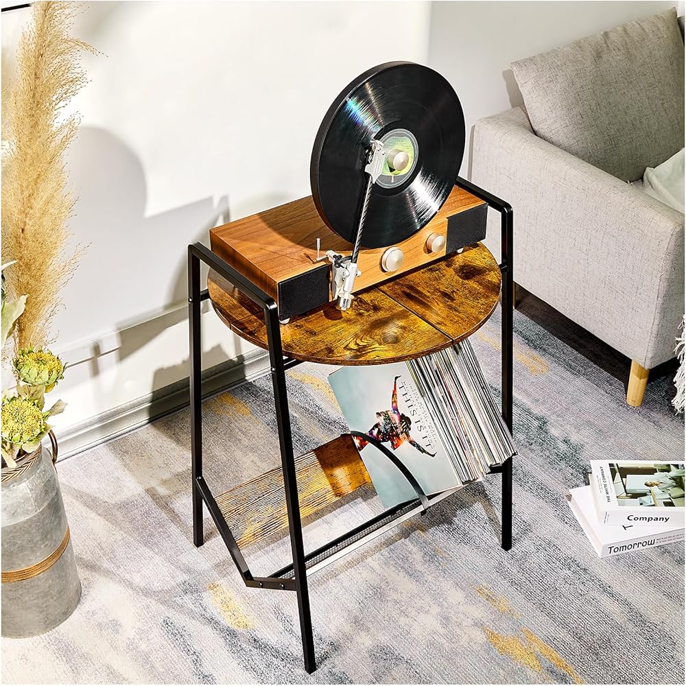 【طاولة مشغل التسجيل · سهل ونظيف】 حامل مشغل التسجيل هو تصميم بسيط، فهو يتكون من الحديد والخشب ككل، والطبقة العليا من حامل الفونو مصنوعة من الخشب، مع قطعة قماش ناعمة متصلة بالسطح، و تتكون الطبقة السفلية من الفولاذ، وهو مريح جدًا للمسح.