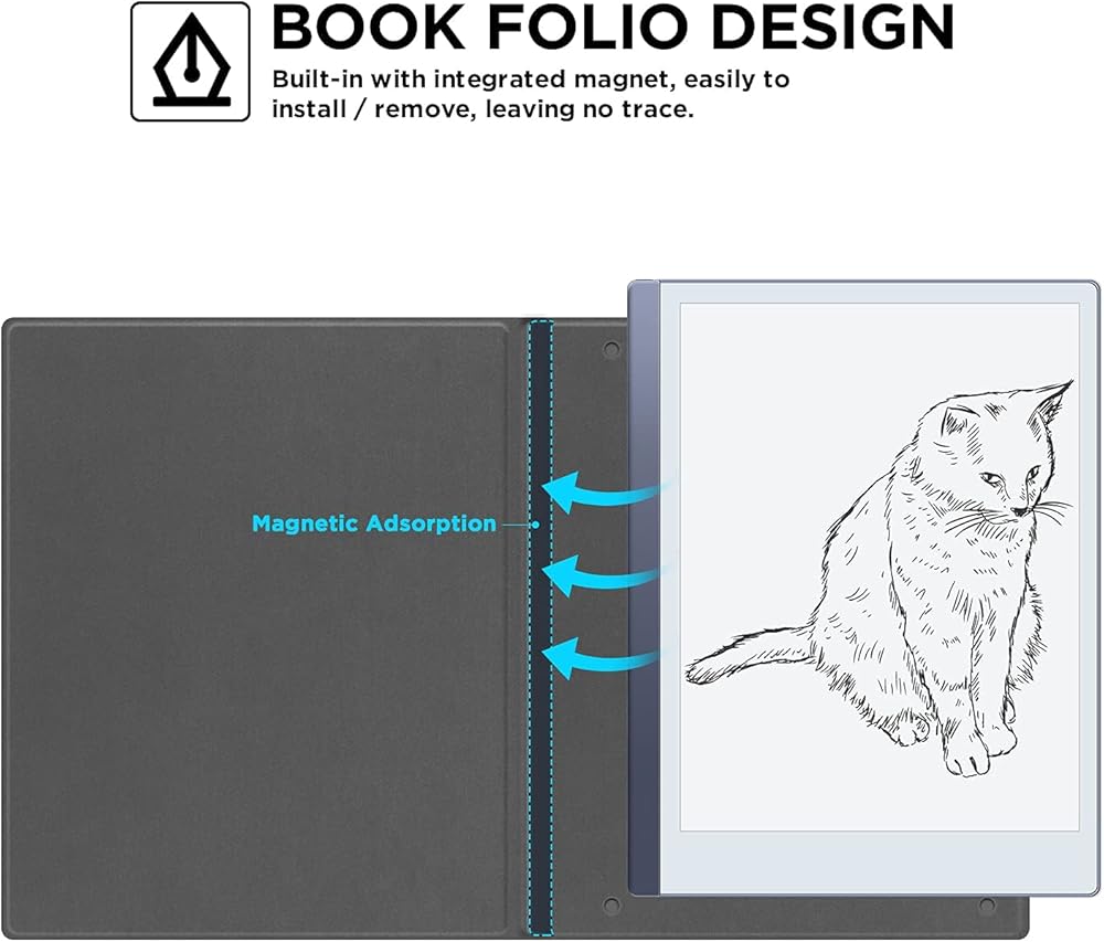 [تصميم فوليو الكتاب]: مدمج بمغناطيسات قوية متعددة، قم بتثبيت جهاز reMarkable 2 الخاص بك في مكان معين بإحكام للحفاظ عليه آمنًا. لا يبدو الغطاء الذكي أكثر أناقة فحسب، بل يبدو أكثر وظيفية أيضًا.