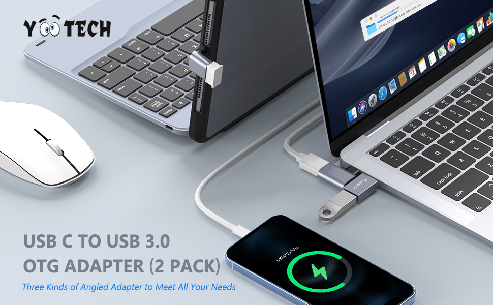 محول USB إلى USB C 90 درجة، 2 حزمة، محول yootech بزاوية أعلى وأسفل USB-C إلى USB، محول Thunderbolt 4/3 إلى USB أنثى لجهاز MacBook Pro 2021، MacBook Air 2020، iMac، Dell XPS، Galaxy Book إلخ