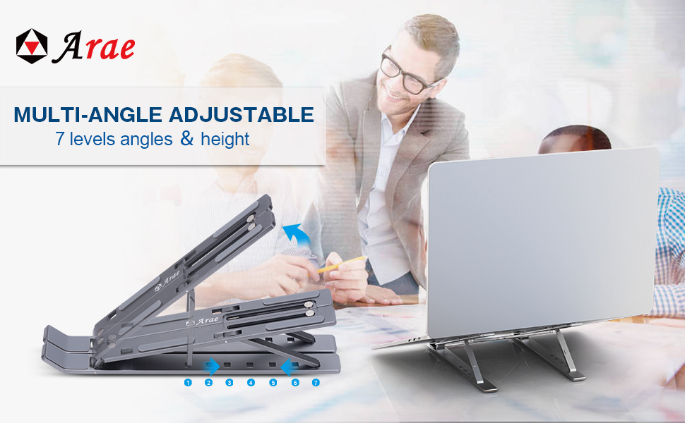 [زاوية قابلة للتعديل] - يوفر حامل الكمبيوتر المحمول الخاص بنا 7 مواقع تأشير قابلة للتعديل، وضبط الارتفاع حسب مستوى راحتك، حتى تشعر ببعض الراحة من آلام الظهر/الكتف/الرقبة/الذراع الناجمة عن الأوضاع غير المناسبة.