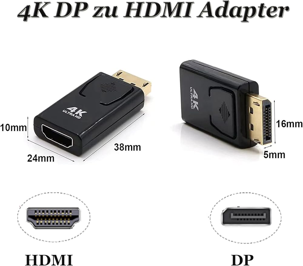 DP HDMI adapter offers 4K resolutions of up to 3840 x 2160 at 30Hz and is backwards compatible with 1440P at 60Hz, 1080P at 120Hz.
