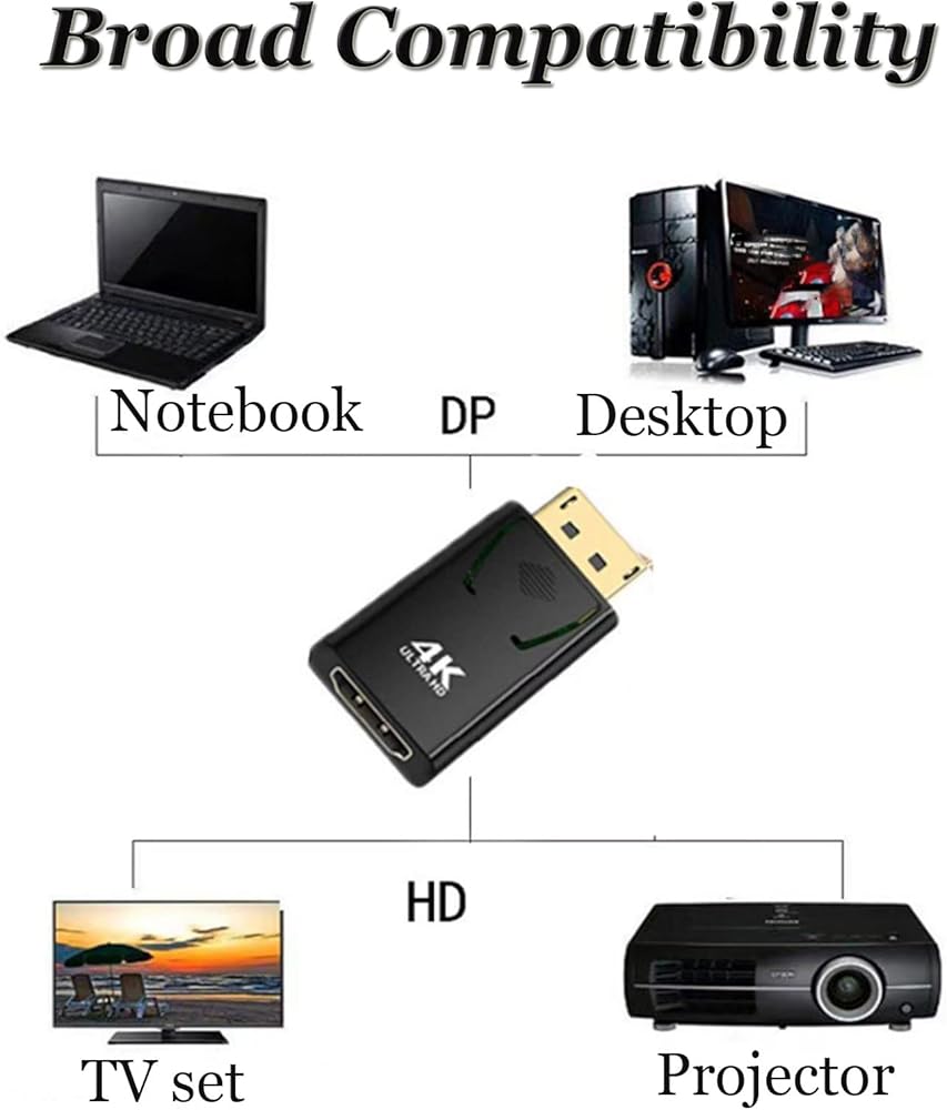 Supports 4K video output - This DP to HDMI adapter can support 4K x 2K @ 30Hz video resolution. A small product, great function, high resolution image quality. DP HDMI adapter offers 4K resolutions up to 3840 x 2160 @ 30Hz and is backward compatible with 1440P @ 60Hz, 1080P @ 120Hz.