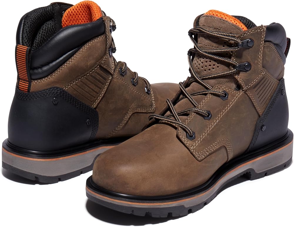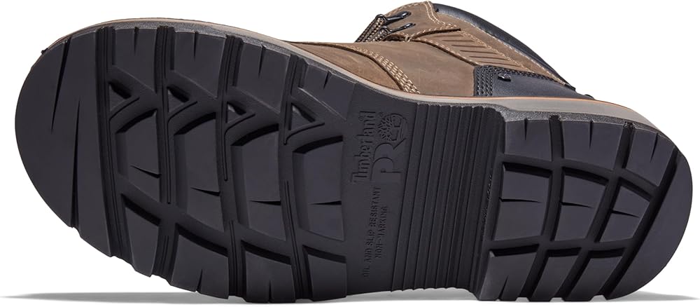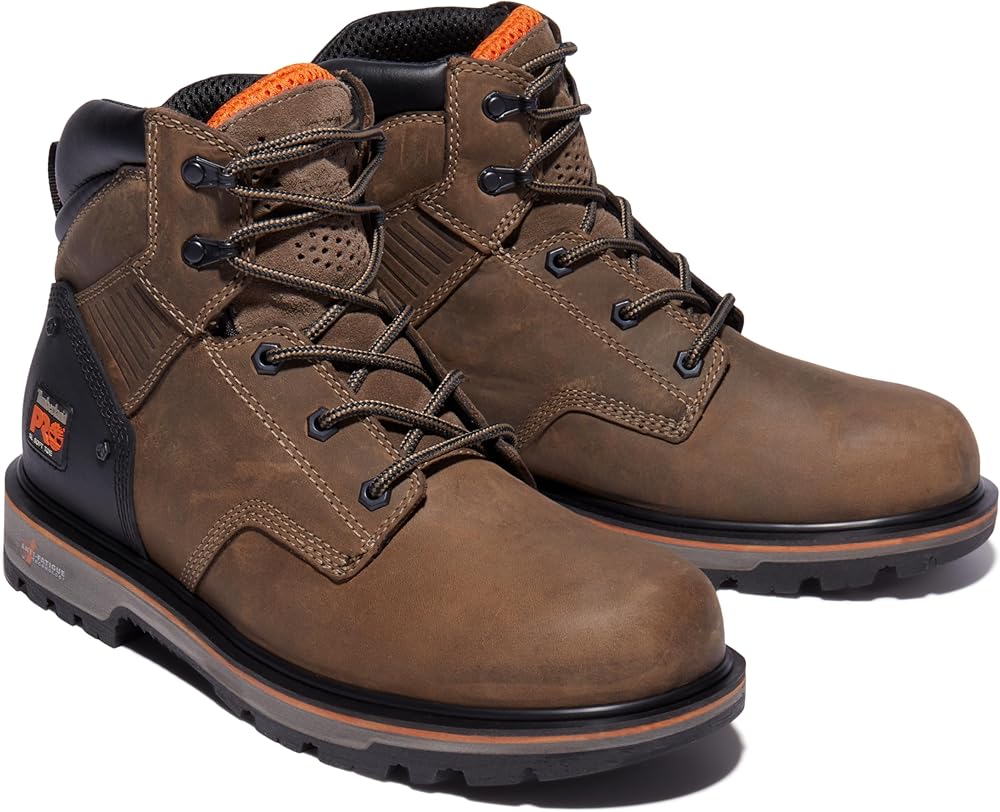 حذاء عمل رجالي من تيمبرلاند برو، باللاست 6 انش بمقدمة ناعمة حذاء عمل متين يبقيك مرتاحًا طوال اليوم في موقع العمل. التصميم المضاد للإجهاد مهم بشكل خاص إذا كنت تعمل في البناء أو المستودع أو في الهواء الطلق. جزء علوي من الجلد المحبب بالكامل مع بطانة من جوديير ببنية من نسيج شبكي للحفاظ على برودة القدم، تصميم برباط تقليدي مع فتحات معززة وياقة ولسان مبطنين لمزيد من الراحة. نعل داخلي مضاد للإجهاد يوفر امتصاص الصدمات واستعادة الطاقة، نعل أوسط مقولب من مادة ايفا خفيف الوزن وبطانة متينة وخفيفة الوزن ومقاومة للتآكل، نعل خارجي من البولي يوريثين الحراري مع حماية من الأخطار الكهربائية