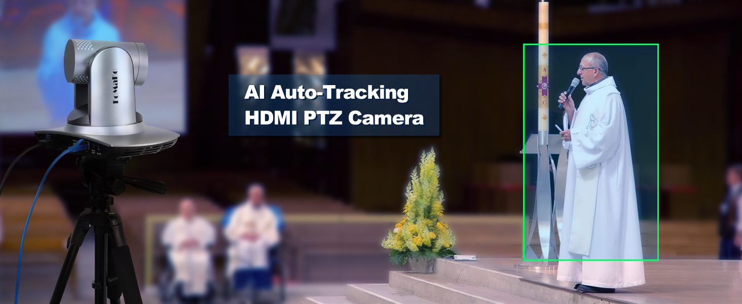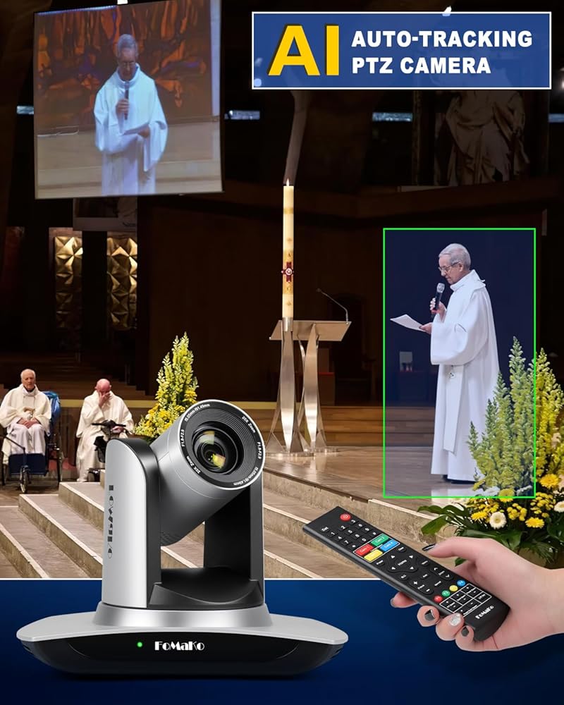 كاميرا FoMaKo AI للتتبع التلقائي PTZ، وكاميرا HDMI PTZ، تدعم كامل إخراج الفيديو بدقة 1080 بكسل حتى 60 إطارًا في الثانية، وألوان تنبض بالحياة، وكاميرا HDMI PTZ ذات الميزانية المحدودة ومصنوعة لخدمة الكنيسة المباشرة، والمدرسة، والبث المباشر، والبث، والمستشفى، والزفاف، دار عبادة.