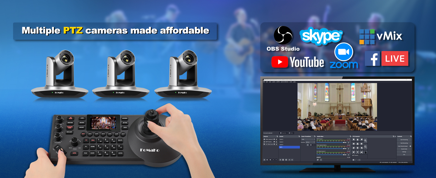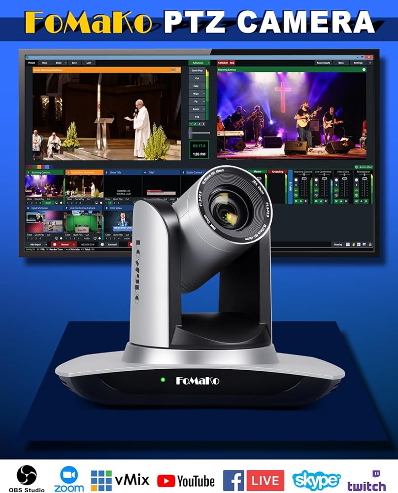 كاميرا تقريب بصري 20x HDMI PTZ. متوافق مع وحدة التحكم في الكاميرا blackmagic وFoMaKo PTZ، ومتوافق مع vMix/OBS وغيرها من برامج بث الفيديو المباشر، وإنتاج فيديو متعدد الكاميرات للبث المباشر إلى YouTube وfacebook.