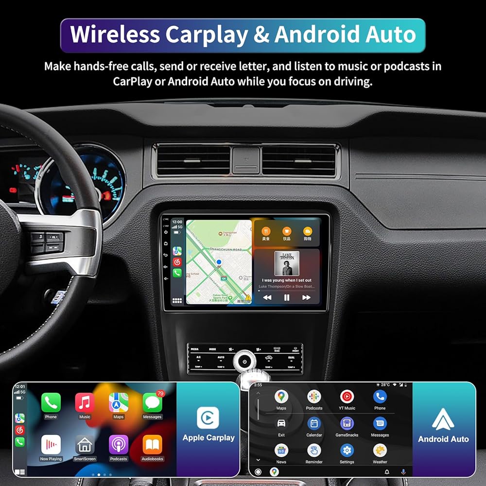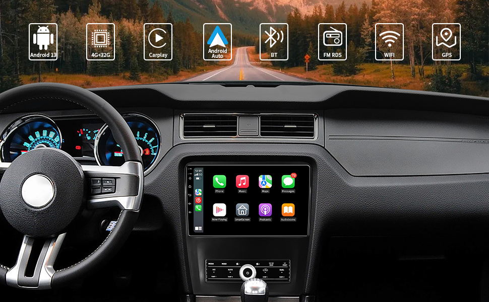 ستيريو سيارة Android 13 4G+32G لسيارة Ford Mustang تعمل باللمس ترقية الراديو 2010 2011 2012 2013 2014، 10.2 بوصة IPS مع Carplay اللاسلكي Android Auto GPS DSP WiFi Bluetooth FM RDS Head Unit