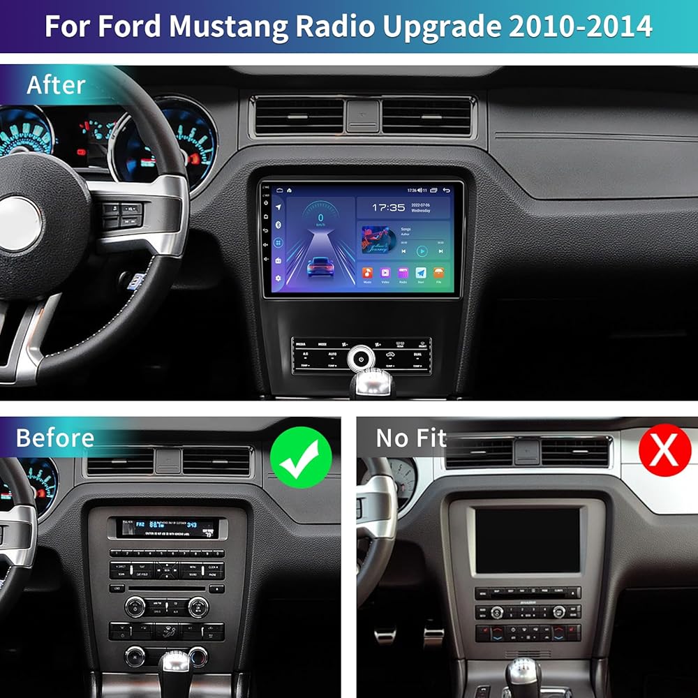 【تذكير مهم قبل شراء راديو ستيريو للسيارة Ford Mustang 2010-2014 】راديو السيارة مثالي لسيارة Ford Mustang 2010 2011 2012 2013 2014. يأتي مع وحدة رأس وكابلات تسخير الأسلاك ولوحة الإطار. لا حاجة لشراء ملحقات إضافية لجعلها تعمل. (نصائح: تناسب فقط مكيف الهواء اليدوي، ولا تناسب مكيف الهواء التلقائي.)
