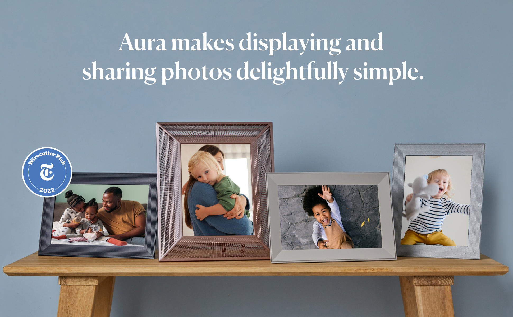 • إطار WIFI رقمي عالي التصنيف: يسعد الملايين من العملاء بـ Aura باعتبارها أسهل طريقة لمشاركة الصور وعرضها مع أحبائهم. أوصت به صحيفة نيويورك تايمز/Wirecutter، وWired، والأشياء المفضلة لأوبرا.